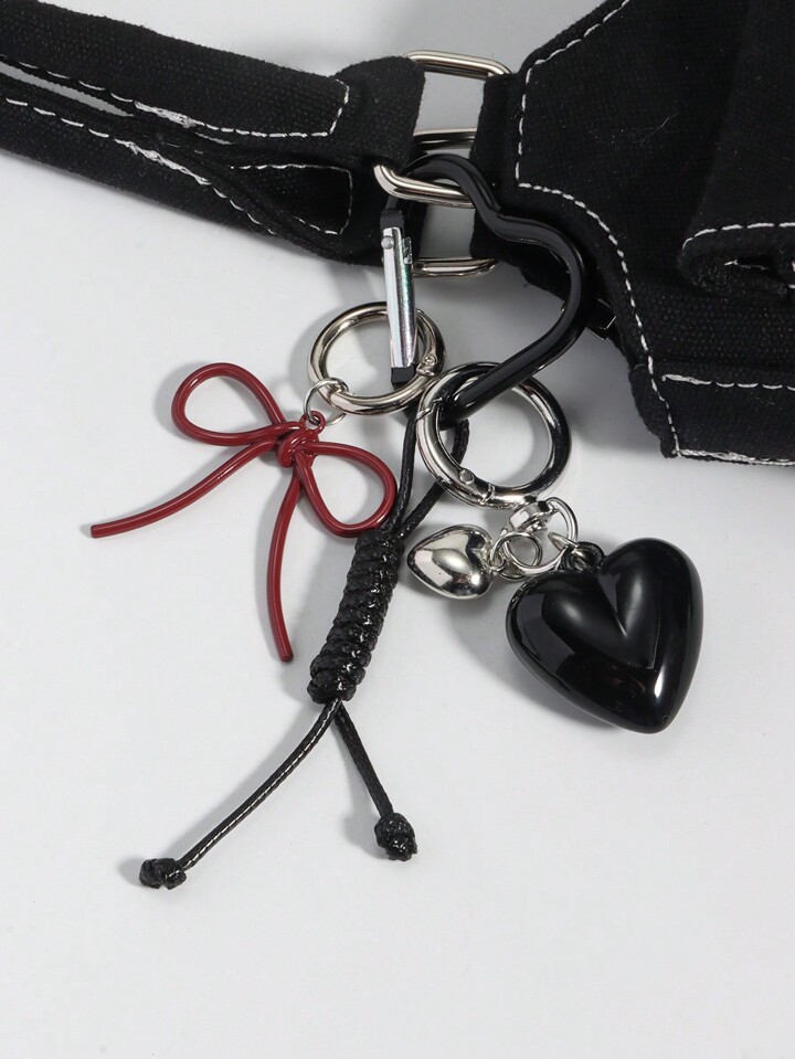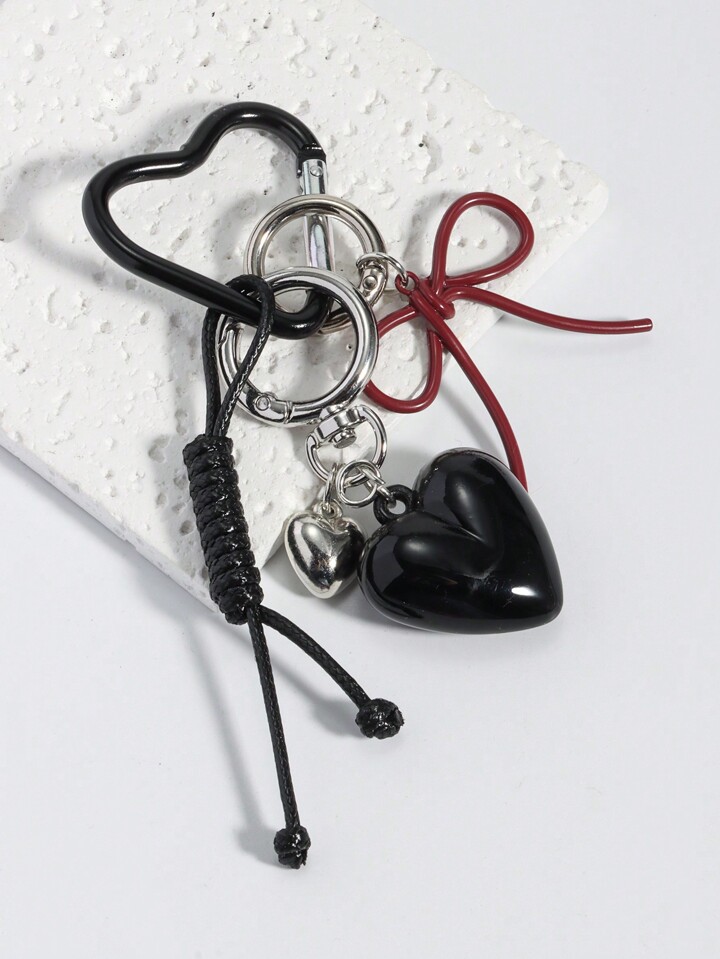 Kawaii 1pc Black Heart-Shaped Carabiner Bag Charm, 1pc Red Bowknot Heart Key Chain, Suitable For Valentine's Day Gift, Birthday Gift, Holiday Gift Valentines