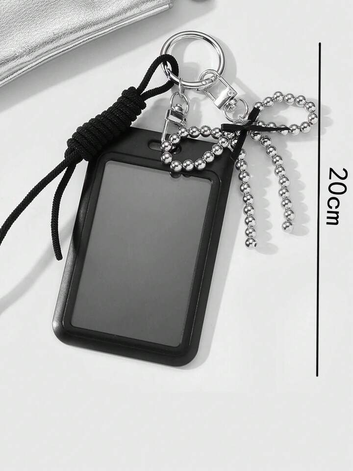 Kawaii 1pc Black Student ID Card Holder Case, 3 Inch Photo Frame, Backpack Decor, ID Badge Lanyard
