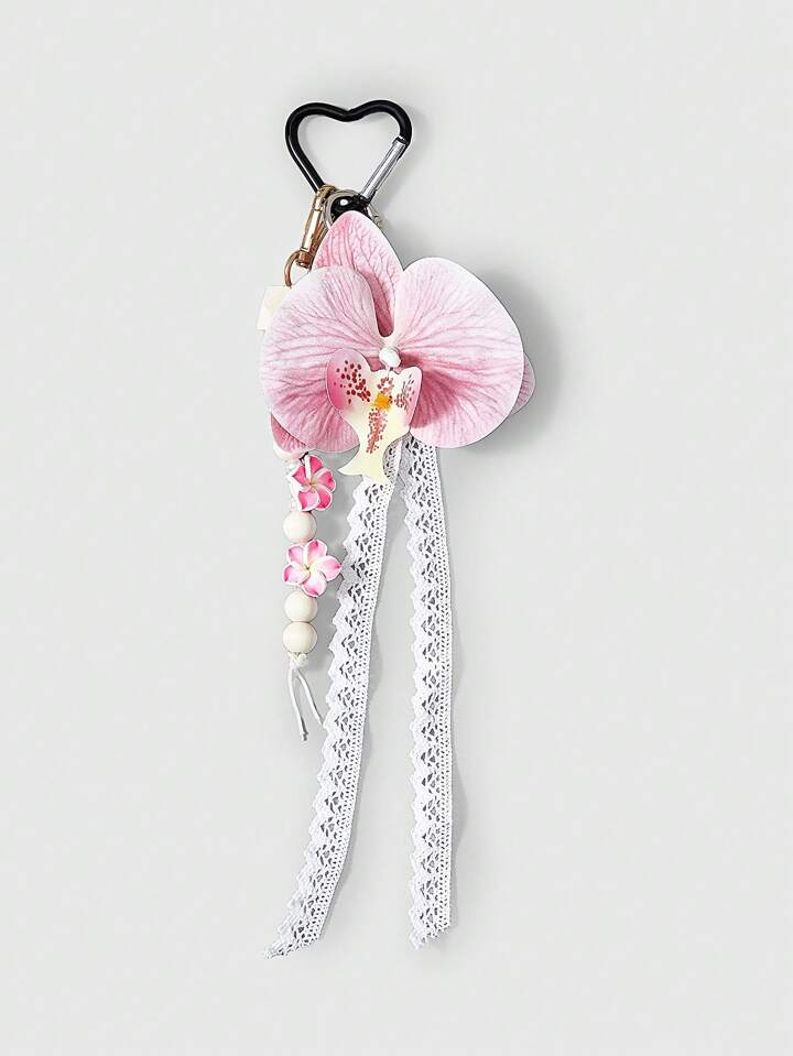 Kawaii 1pc Bohemian Style Tropical Flower Holiday Beach Plumeria Handmade Beads Wooden Bead Bag Charm Keychain