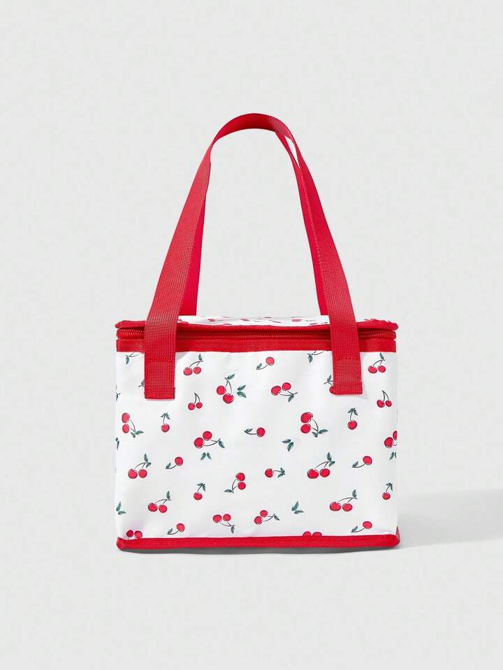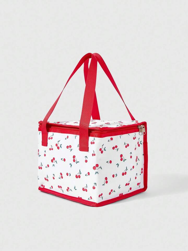 Kawaii 1pc Cherry Print Fashionable Portable Cute Insulated Lunch Bag