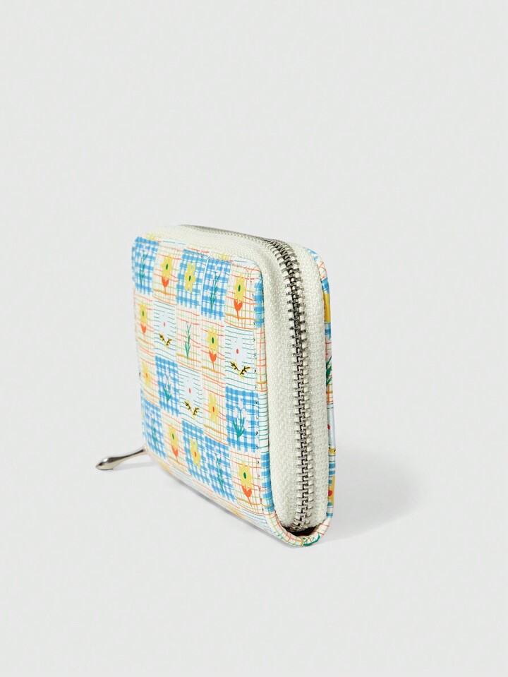 Kawaii 1pc Cute Chrysanthemum Floral Print Minimalist Zipper Coin Purse For Women Wallet Mini Wallet Purse Wallet Small Wallet Cute Wallet