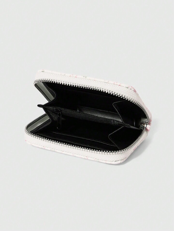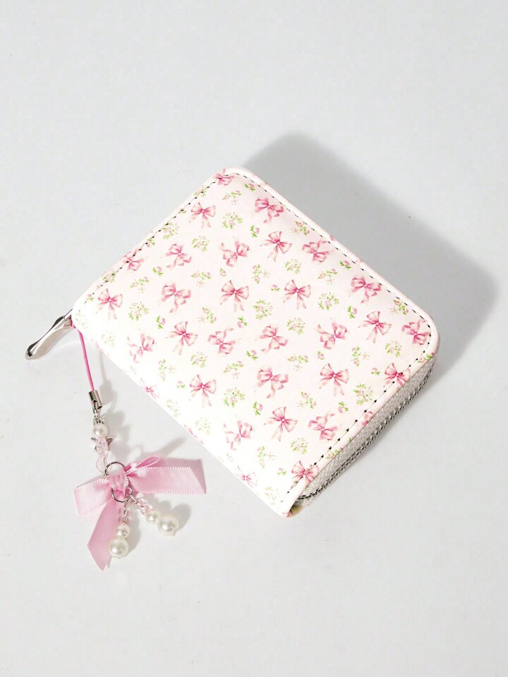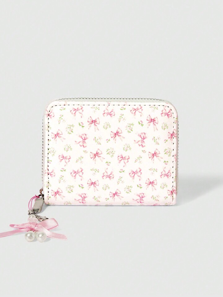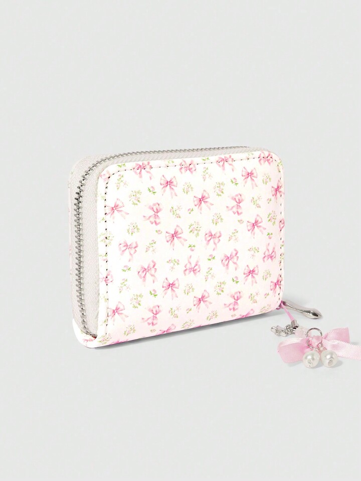 Kawaii 1pc Cute Floral Bow Decor Minimalist Zip Coin Purse, Bow Pendant Design For Women