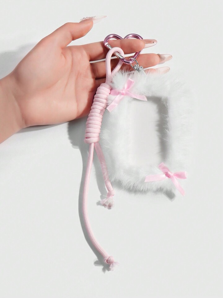 Kawaii 1pc Cute & Minimalistic White Plush Fabric Strap With Pink Ribbon Bow Adjustable Lanyard, Suitable For ID Card, Keys, Bag Decoration, Gift For Office Workers, Students, Daily Use