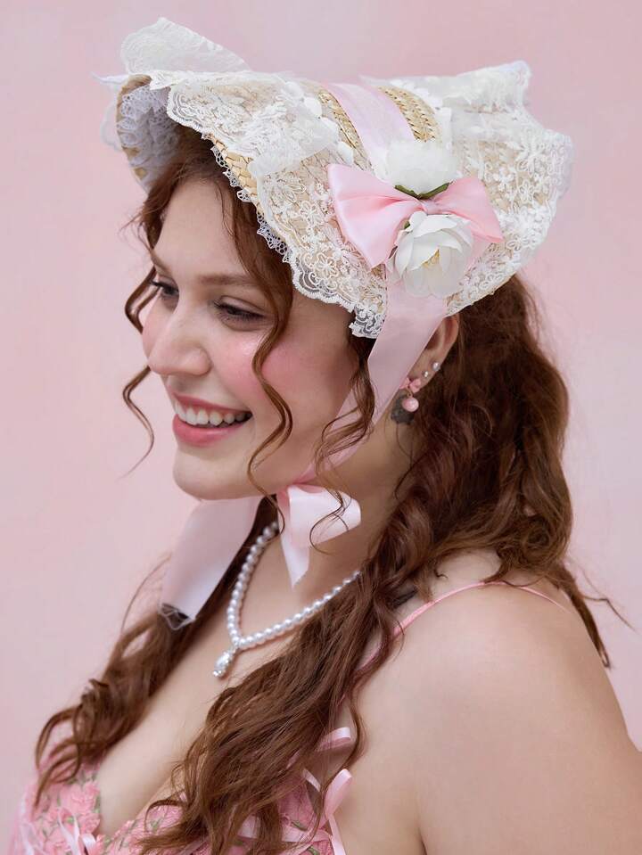 Kawaii 1pc Cute Pastoral Style Butterfly & Rose Element Straw Hair Clip, Fresh Sweet Lace Flower Hair Clip, Handmade Lolita Tea Party Clamp Flat Top Hat Hair Accessory Claw Clips Hair Slide Hair Barrettes