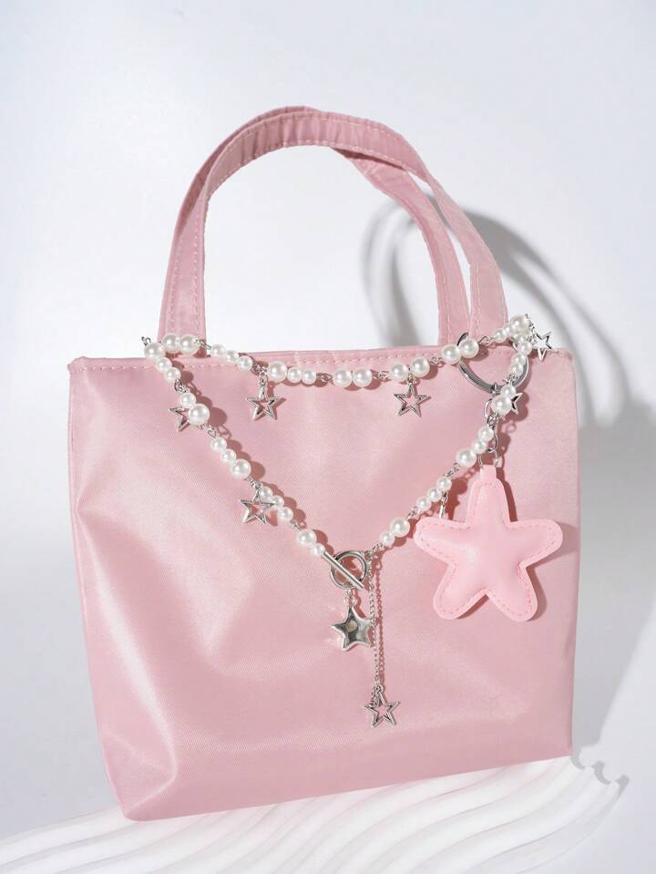 Kawaii 1pc Cute Pink Star & Faux Pearl Decor Lady's Handbag, Suitable For Spring Outing And Dating