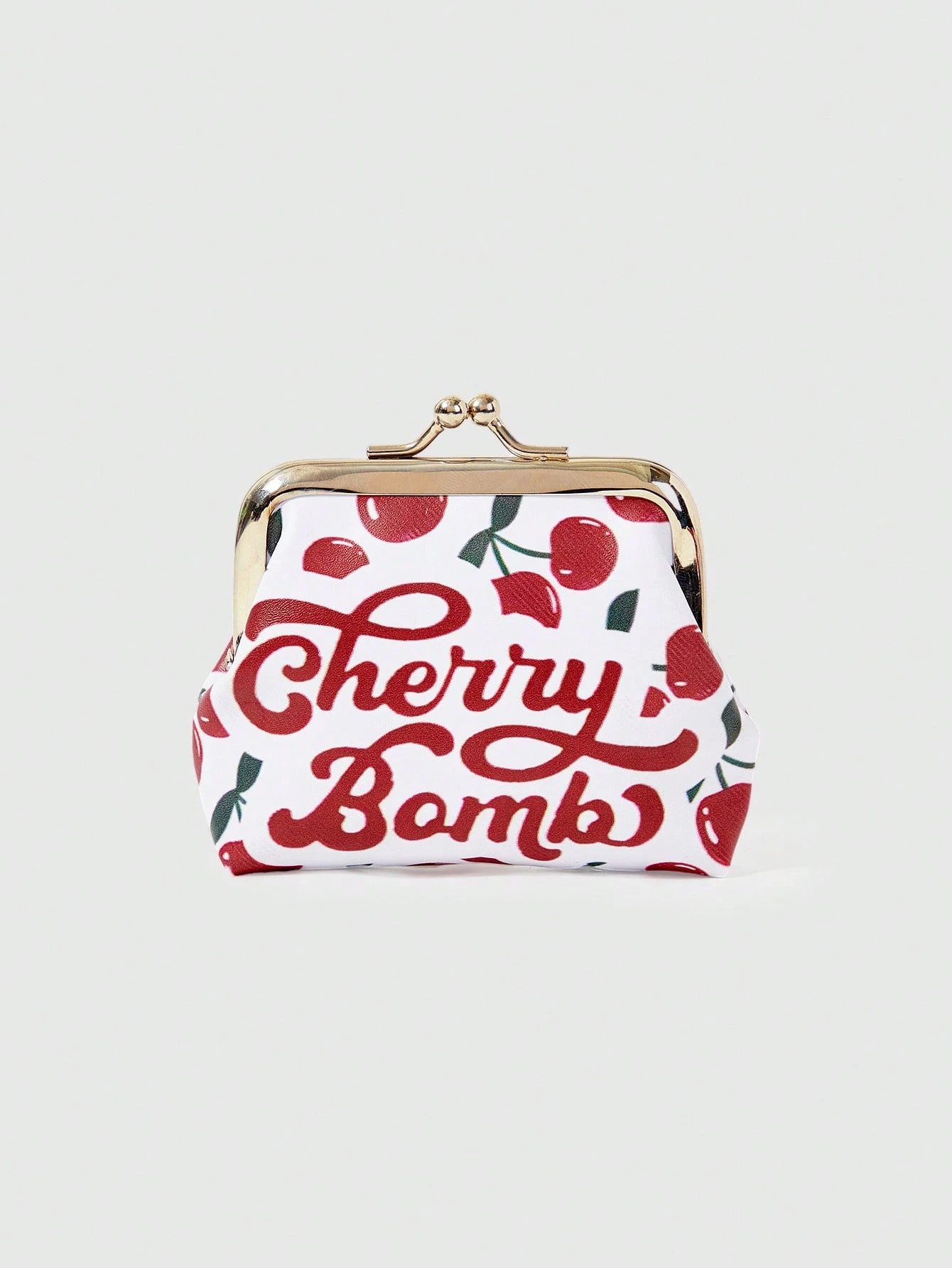 Kawaii 1pc Cute Red Cherry Pattern Mini Coin Purse, Suitable For Everyday Use, Can Store Cards And Jewelry