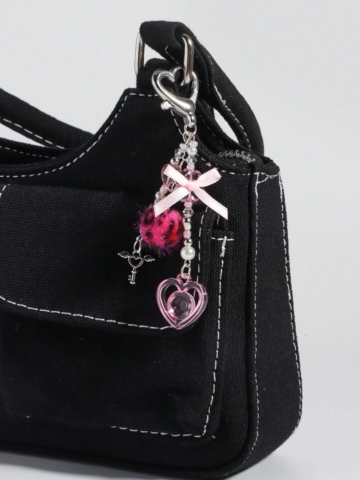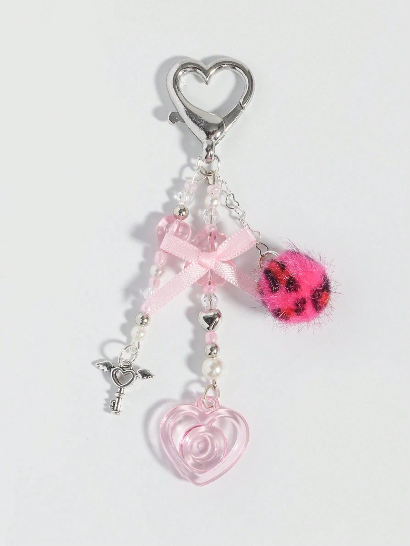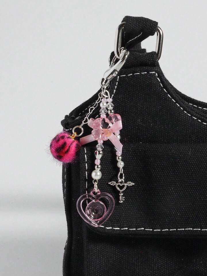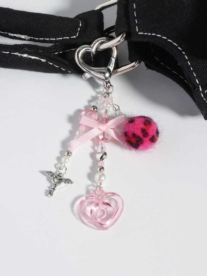 Kawaii 1pc Cute Y2K Style Pink Heart-Shaped Bag Charm, 1pc Pink Leopard Fluffy Pom Pom Keychain