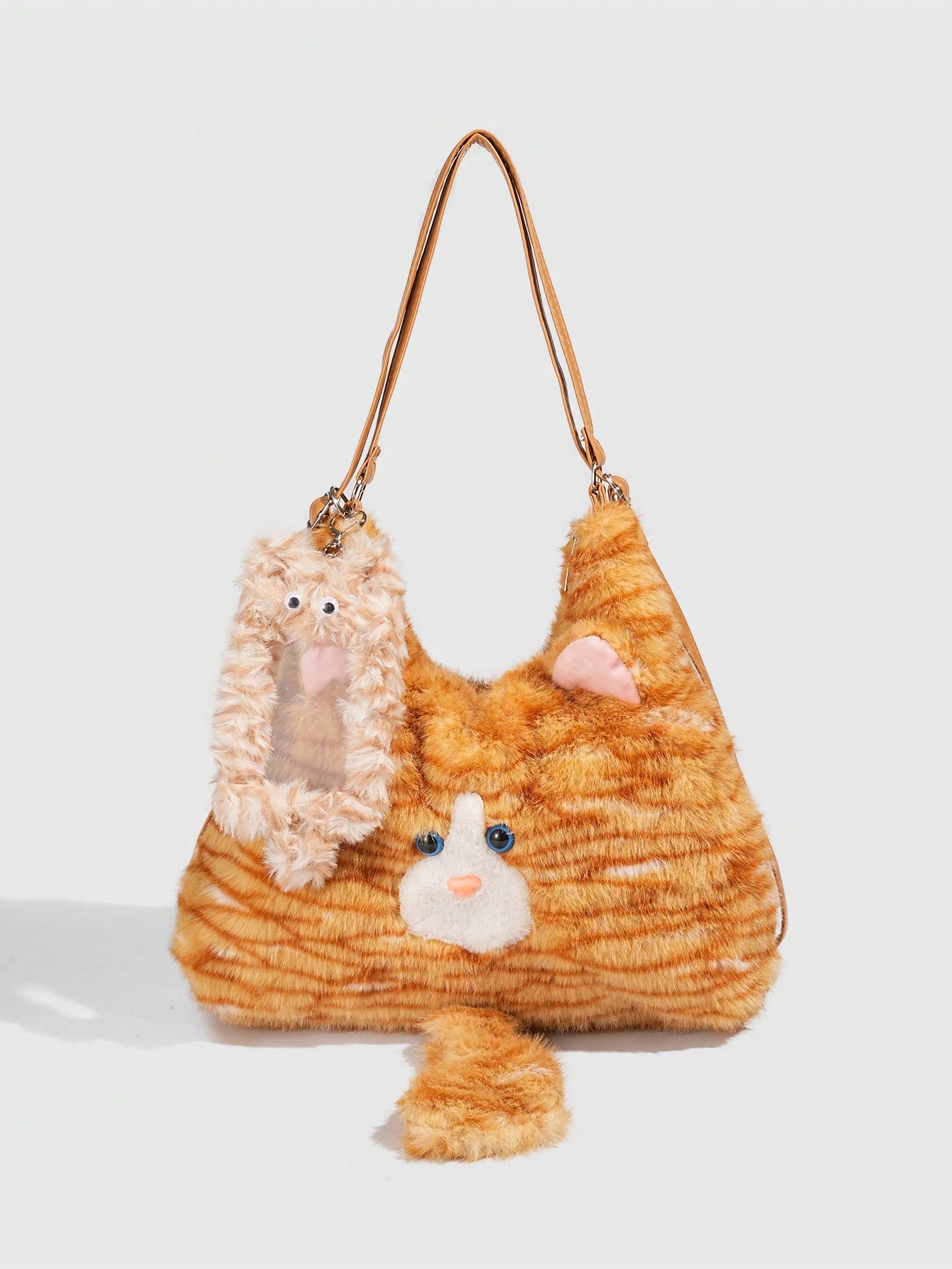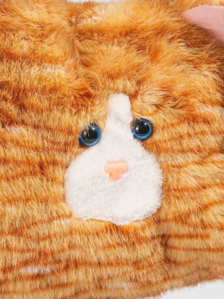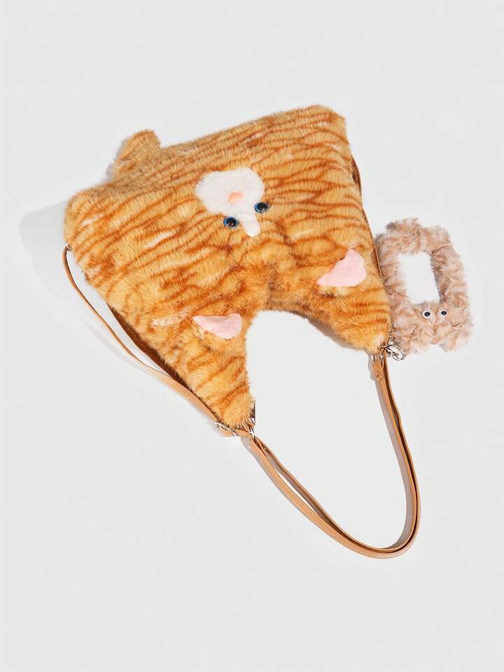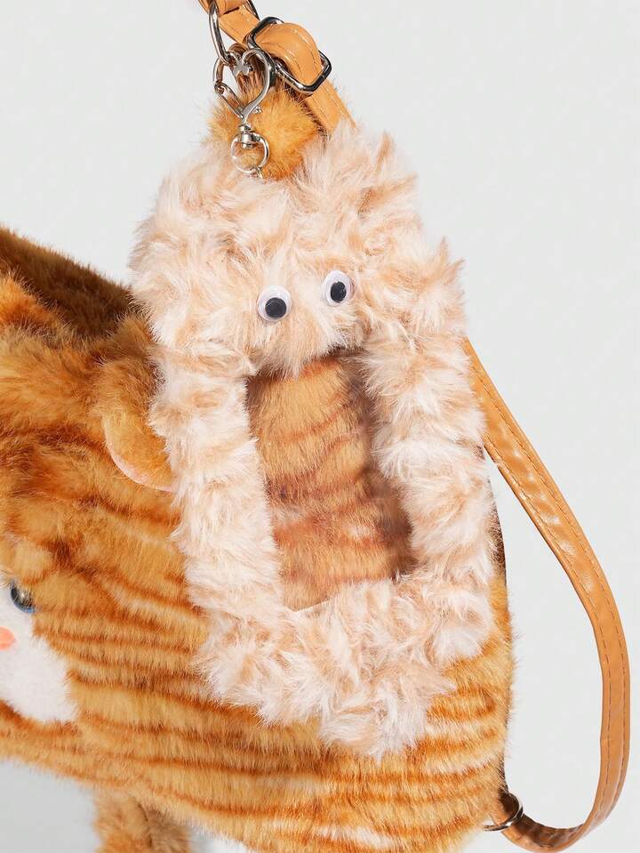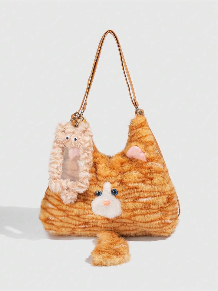 Kawaii 1pc Cute Yellow Plush Cat In A College Style, A Long Tail Cat Armpit Bag, A Large Capacity Commuting Tote Bag For Daily Use In Autumn And, A Small Cat Card Sleeve To Match The Backpack