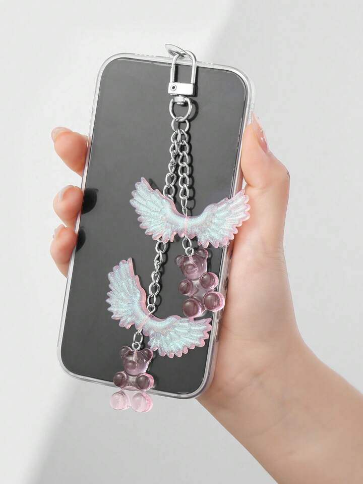 Kawaii 1pc Elegant, Cute Pink Resin Butterfly-Orchi D Decorative Charm With Sparkling Wings, Mini Teddy Bear, Crystal Mesh Bow - Handmade Keychain, Bag Charm, Phone Decor, Gift For Women