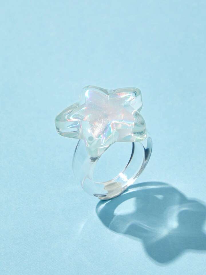 Kawaii 1pc Fashion Plastic Star Decor Clear Ring For Women For Daily Decoration