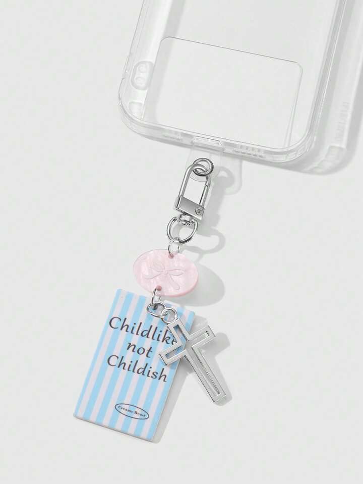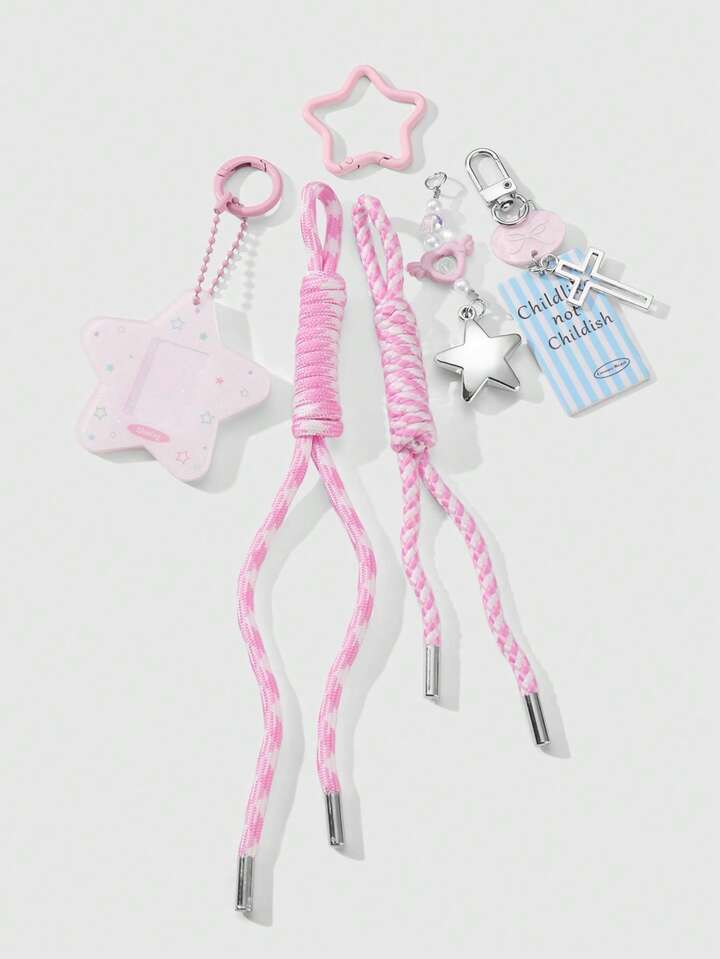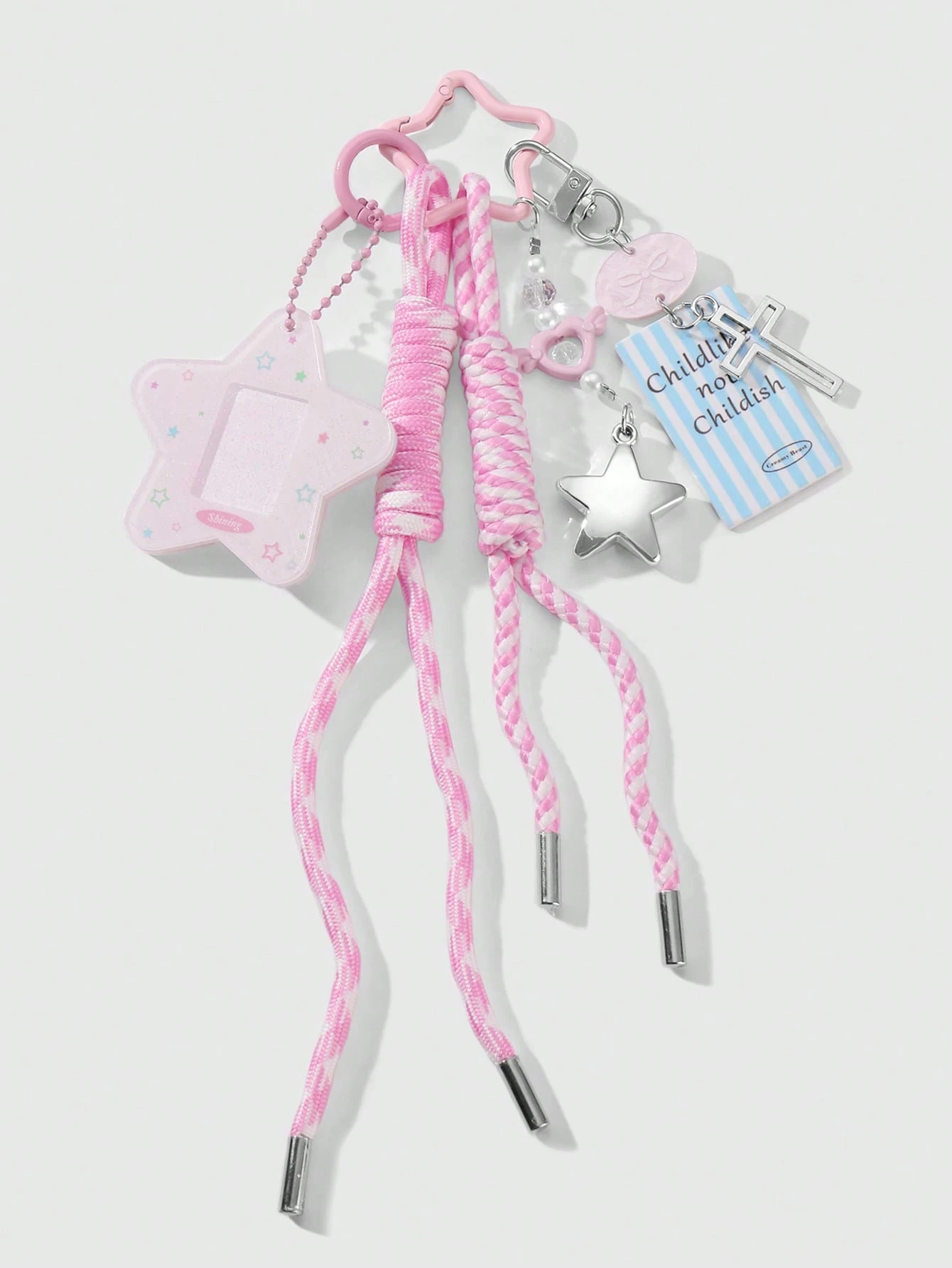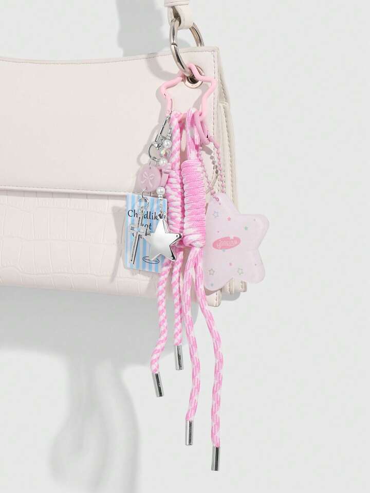 Kawaii 1pc Fashionable Versatile Sweet High-Quality Pink Beaded Acrylic Faux Diamond Star Frame ID Card Photo Butterfly Cross DIY Keychain Pendant Charm Suitable For Women, Girls Daily Wear, Holiday Gift