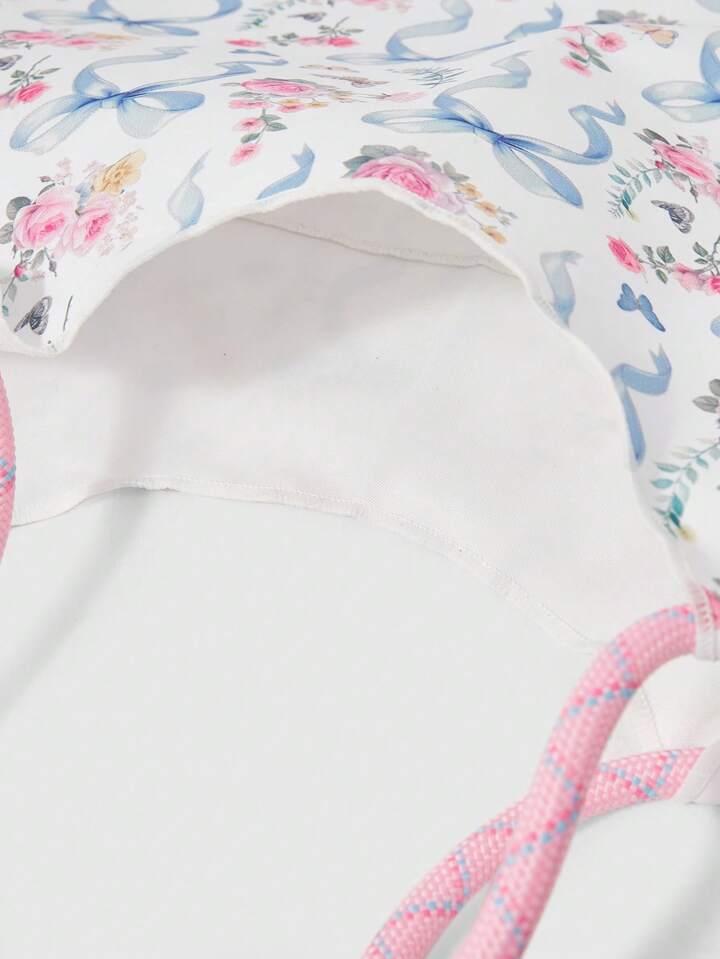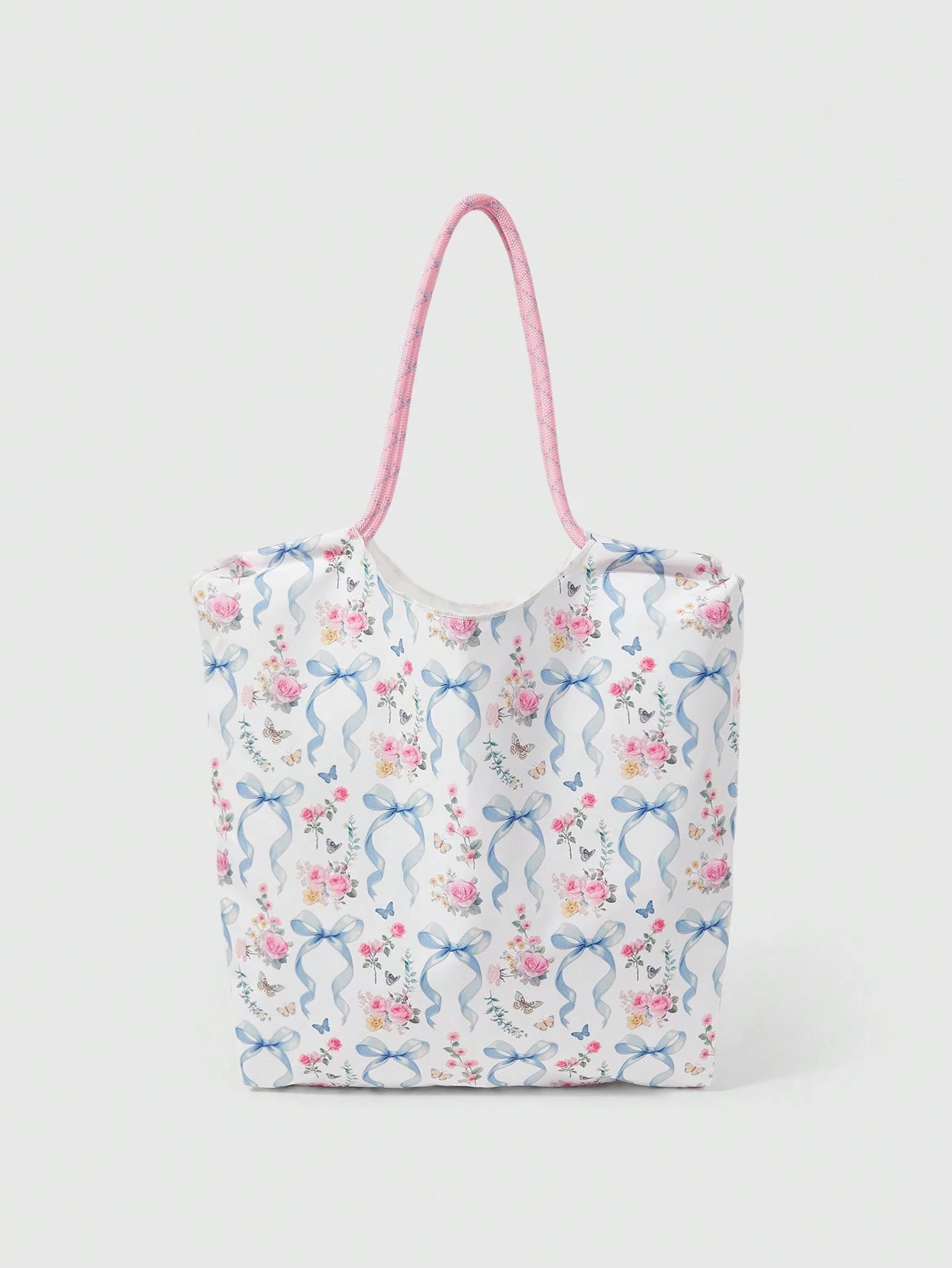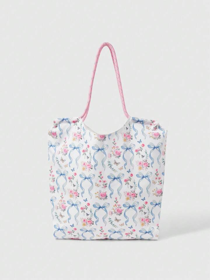 Kawaii 1pc Floral Bow Decor Women Tote Bag