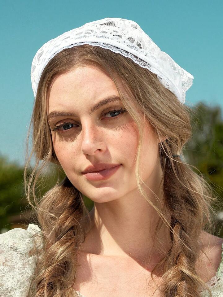 Kawaii 1pc Floral Lace Thin Triangular Scarf, Sweet Cute Style Hollow Out Head Wrap Hair Band