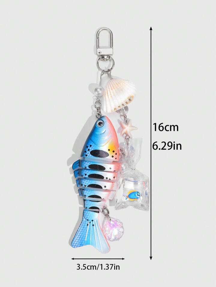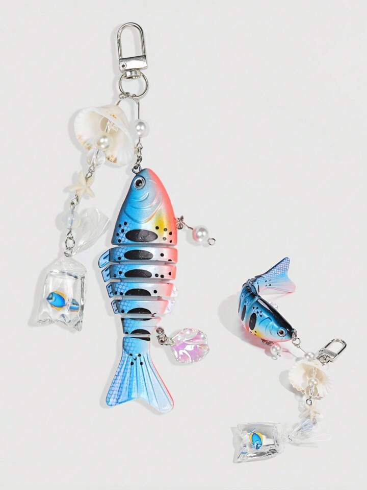 Kawaii 1pc Handmade Holiday Style Creative Ocean Series Fish Shape Keychain, Bionic Fishing Lure, Multi-Section Fishing Hook Pendant
