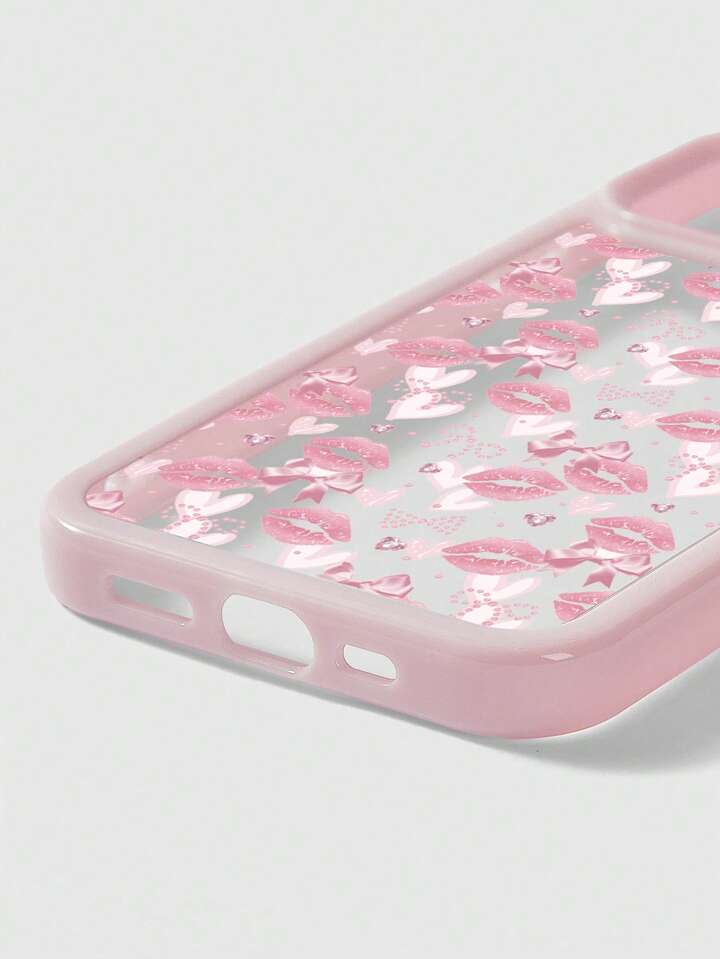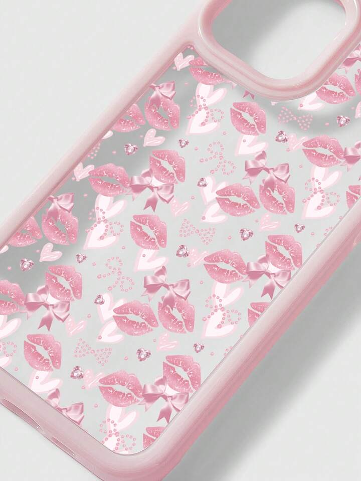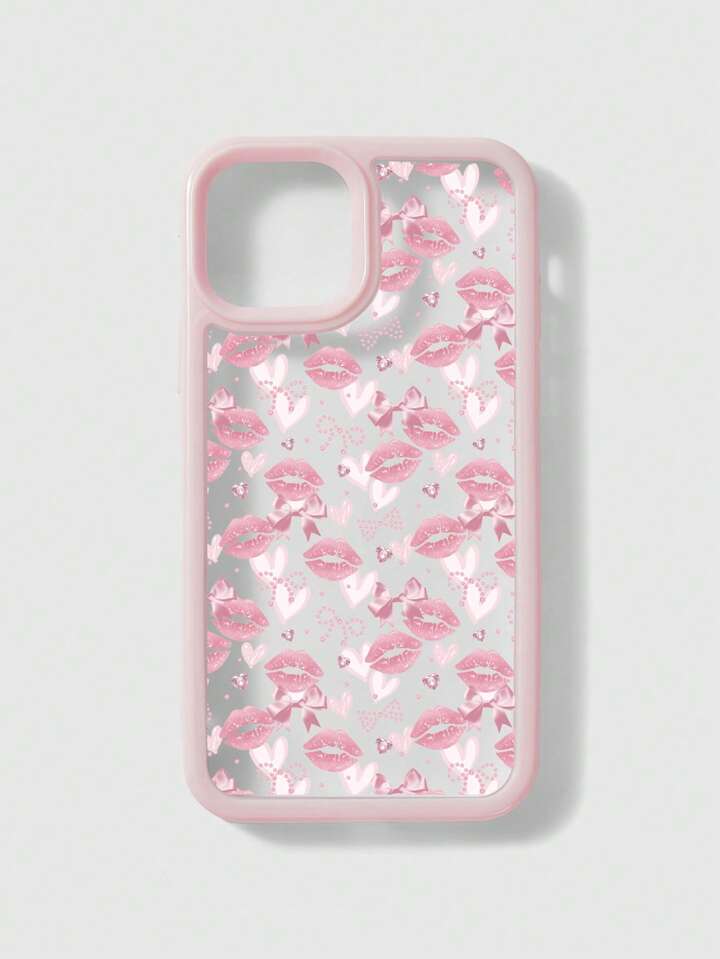 Kawaii 1pc Heart Polka Dot Pink Bow Lips Pattern Phone Case