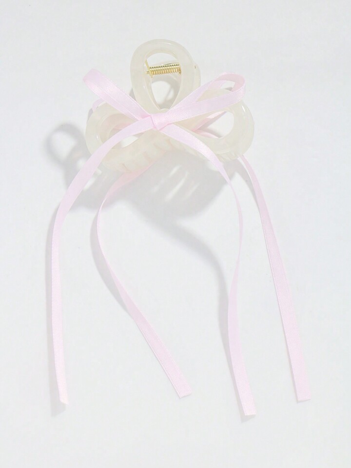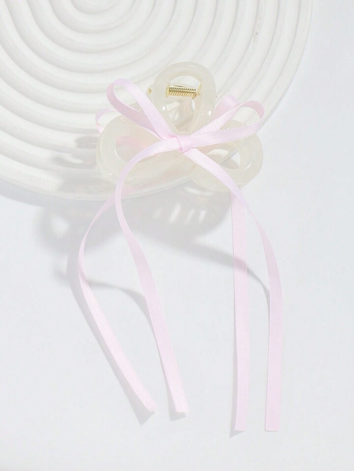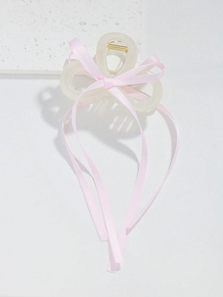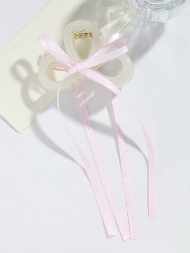 Kawaii 1pc Imported French Ballet Style PPS Material Printed Pink Bowknot Ribbon Hair Claw, Delicate And Unique Design, Graduation Gift