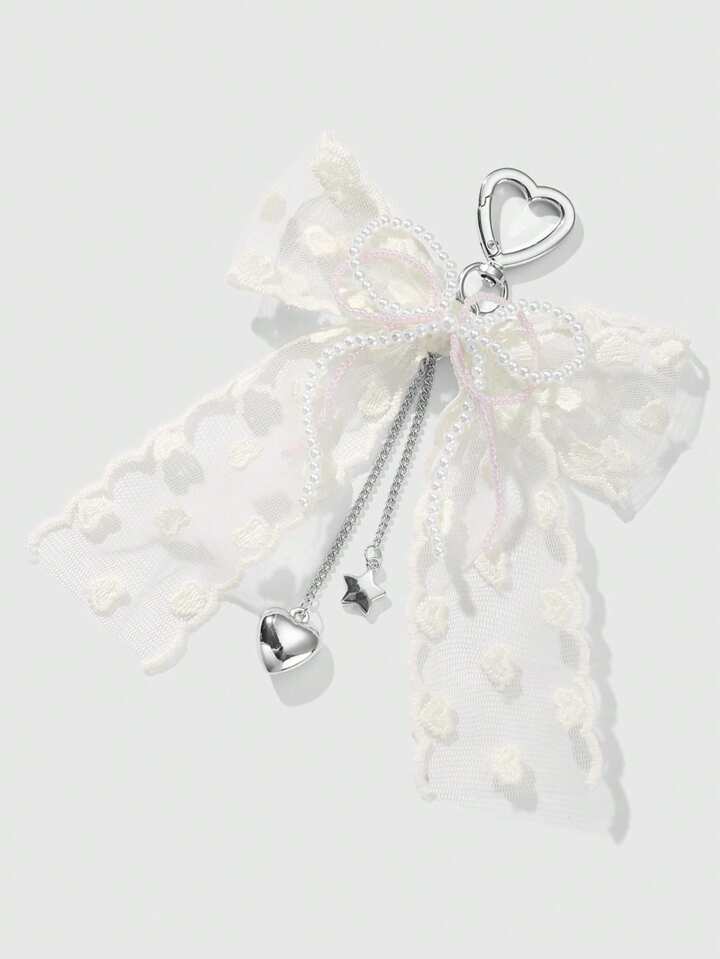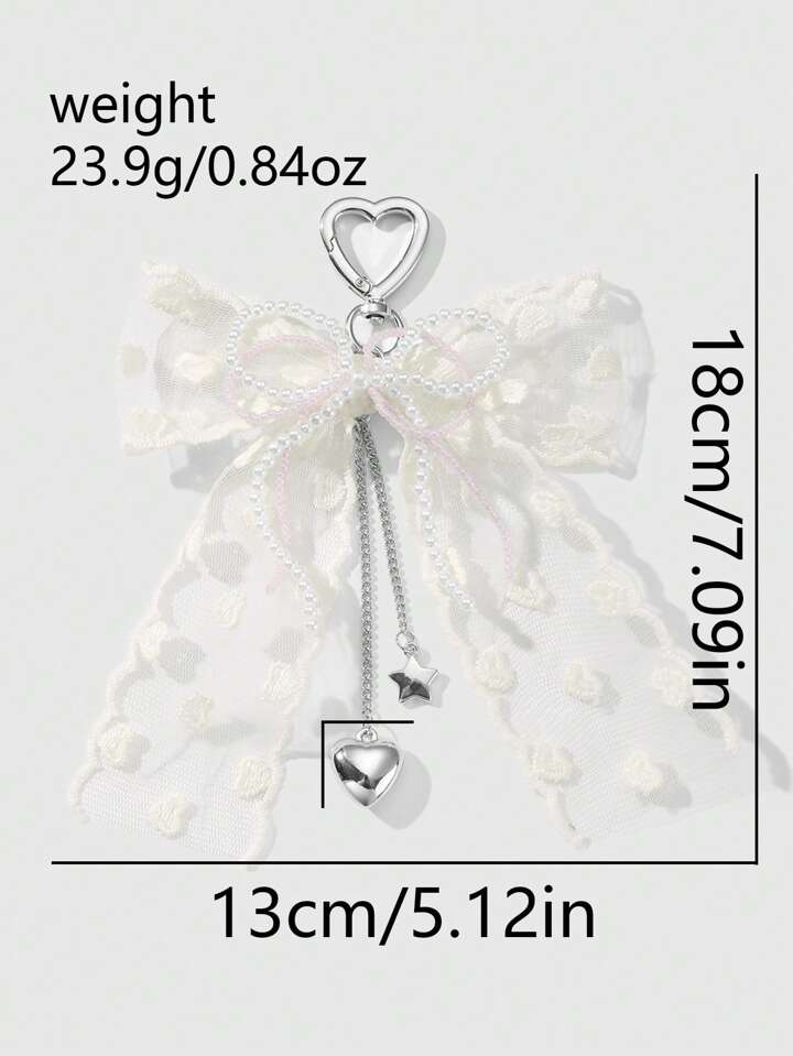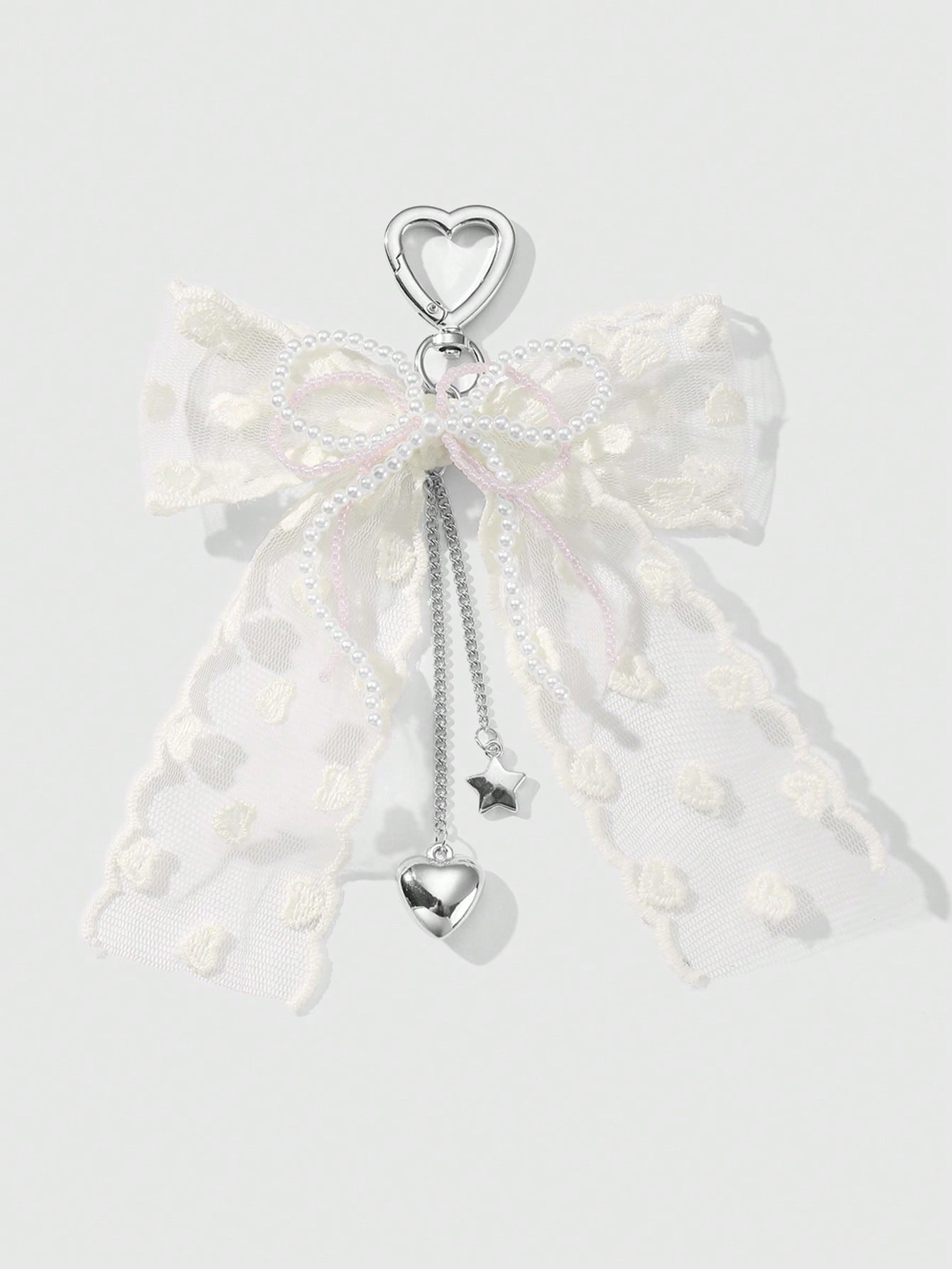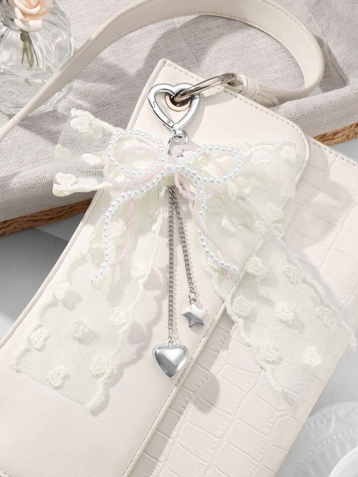 Kawaii 1pc Korean Minimalist Elegant Versatile Luxury Handmade Beaded White Faux Pearl, Faux Crystal, Mesh Bow, Chain, Heart, Star DIY Keychain Bag Charm Accessory, Suitable For Women, Ladies Daily Wear, Holiday Gift