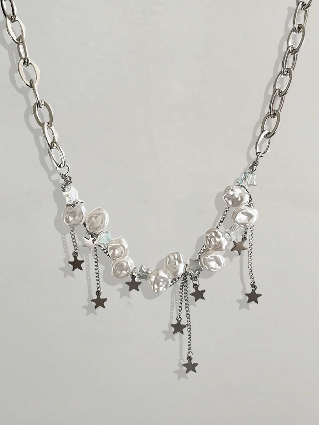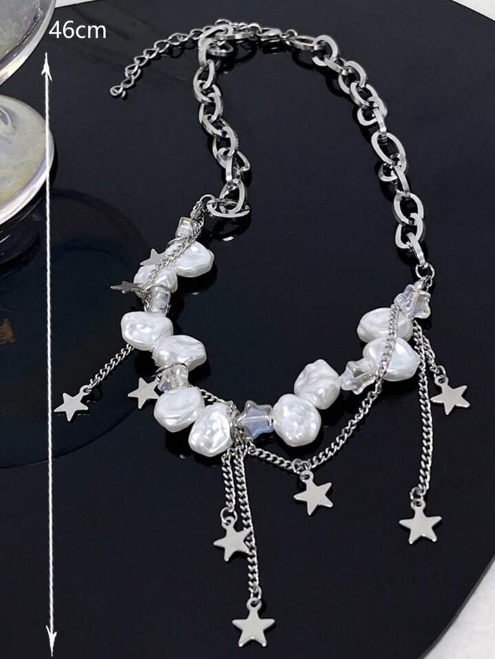 Kawaii 1pc Pearl & Five-pointed Star Pendant Necklace