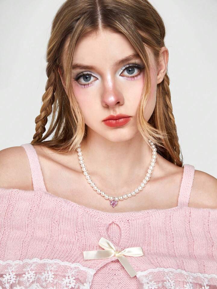 Kawaii 1pc Pearl Pink Pendant Necklace
