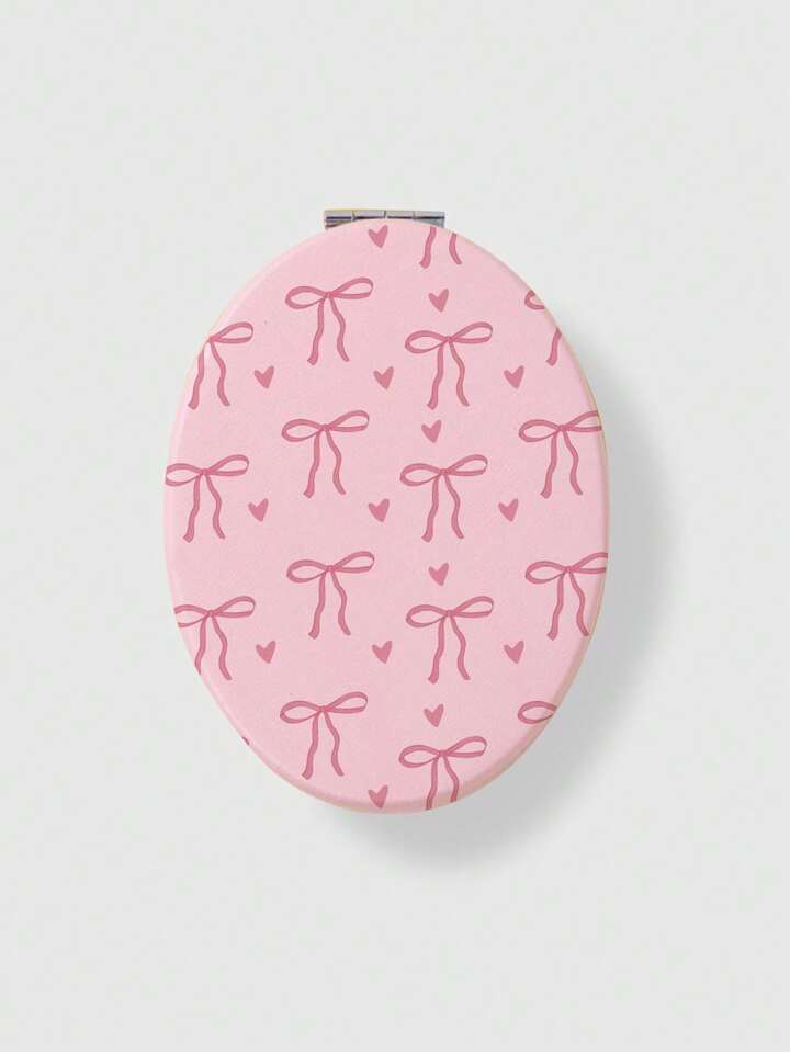 Kawaii 1pc Pink Bow & Heart Pattern Square Mirror, Portable Handheld Mirror For Girls, Random Floral Design