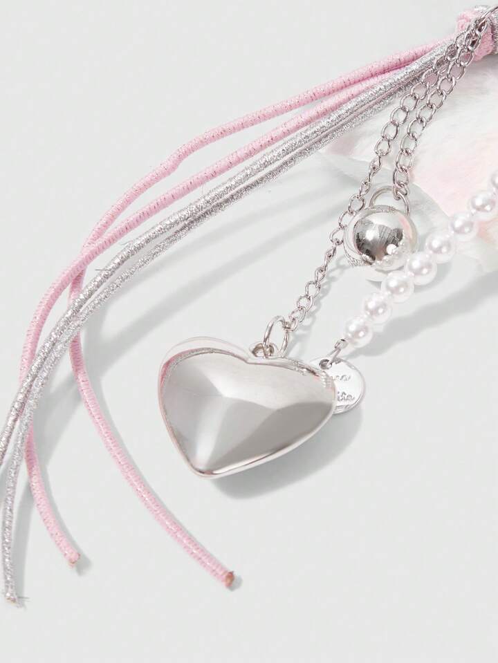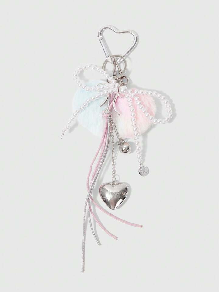 Kawaii 1pc Pink Bow Pearl Heart Bag/Purse Charm