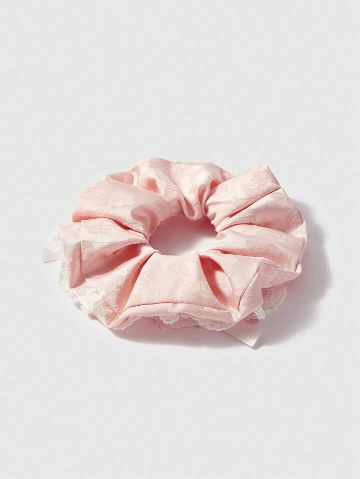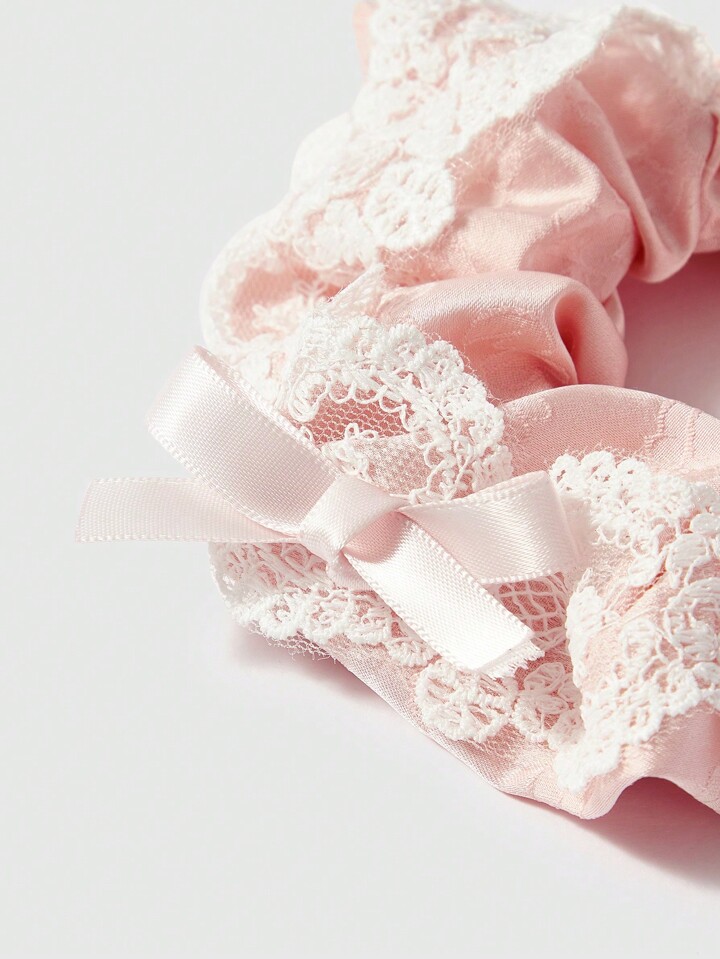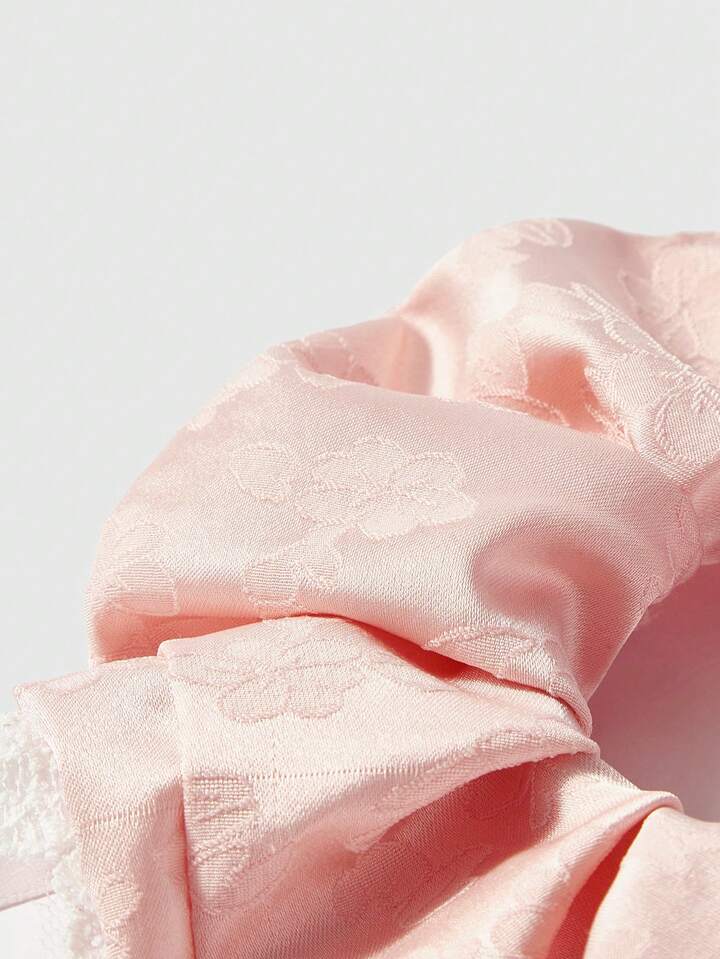 Kawaii 1pc Pink Printed Mesh Ribbon Bow Y2K Style Hair Scrunchie Suitable For Daily Use