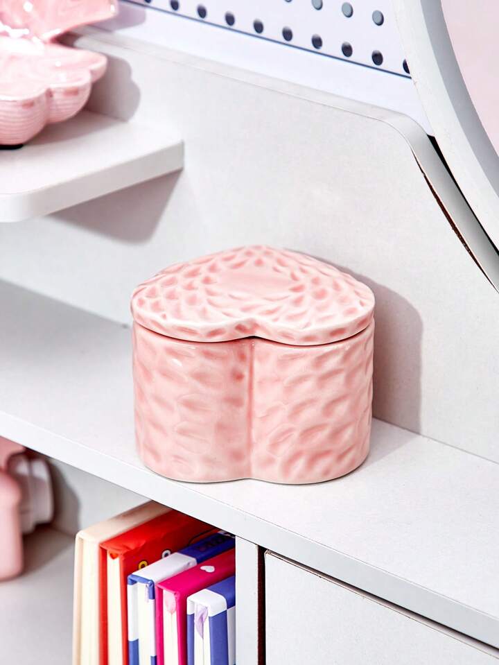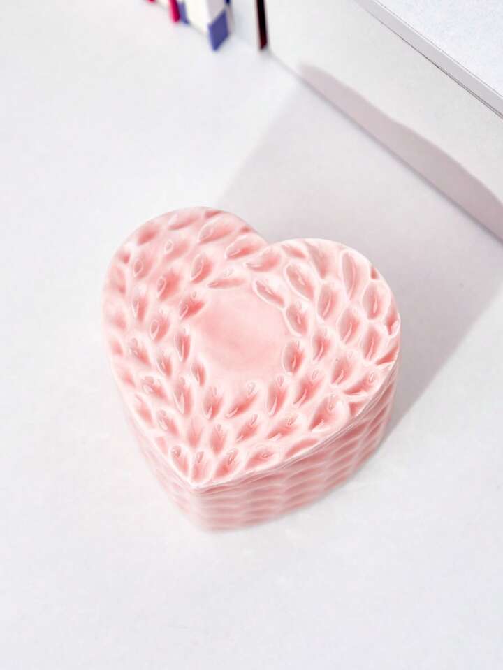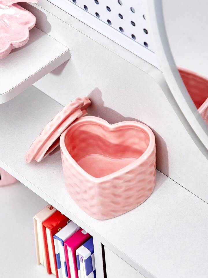 Kawaii 1pc Porcelain Jewelry Tray,Casual Cute Heart Design Jewelry Storage Display Showcase Holder Box