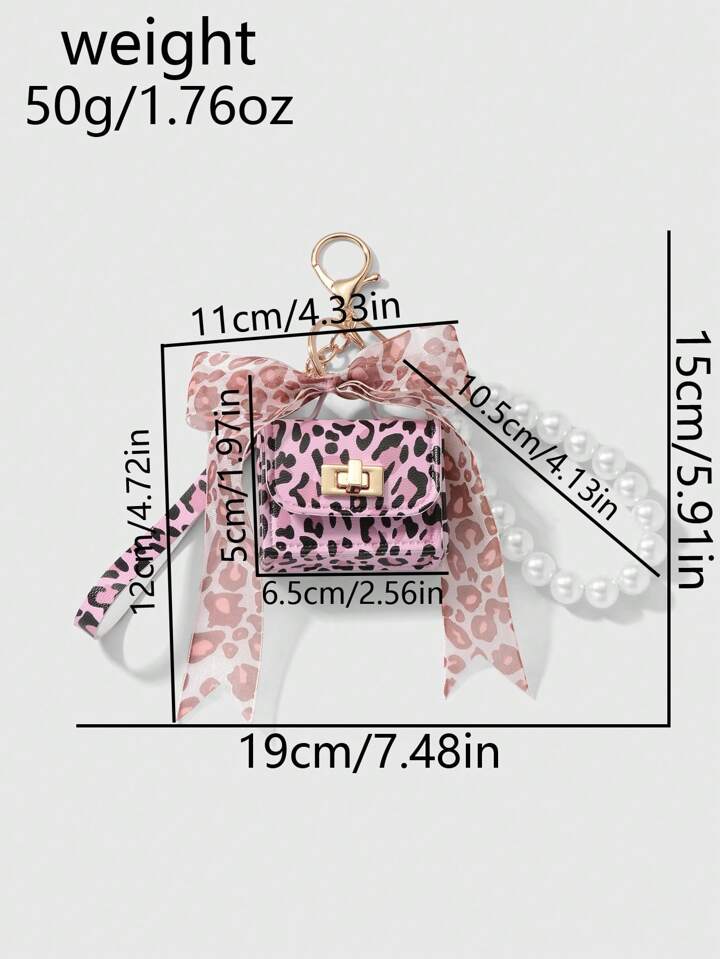 Kawaii 1pc Retro Stylish & Cute Handmade Beaded White Faux Pearl, Purple Leopard Print Mesh Bow Leather Coin Purse, Earphone Case, Keychain, Bag Charm, Suitable For Women, Great Gift Idea