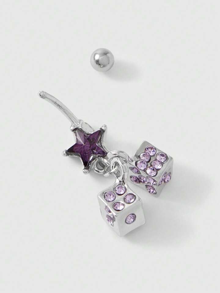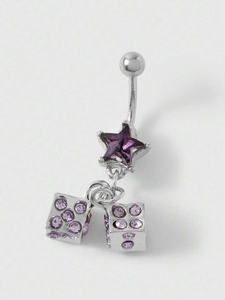 Kawaii 1pc Stainless Steel Rhinestone Pentagram Dice Navel Ring For Women