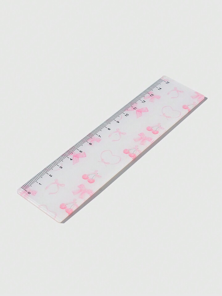 Kawaii 1pc Student Cartoon Bowknot Printed Ruler With Measurement Scale, Back To School Supplies