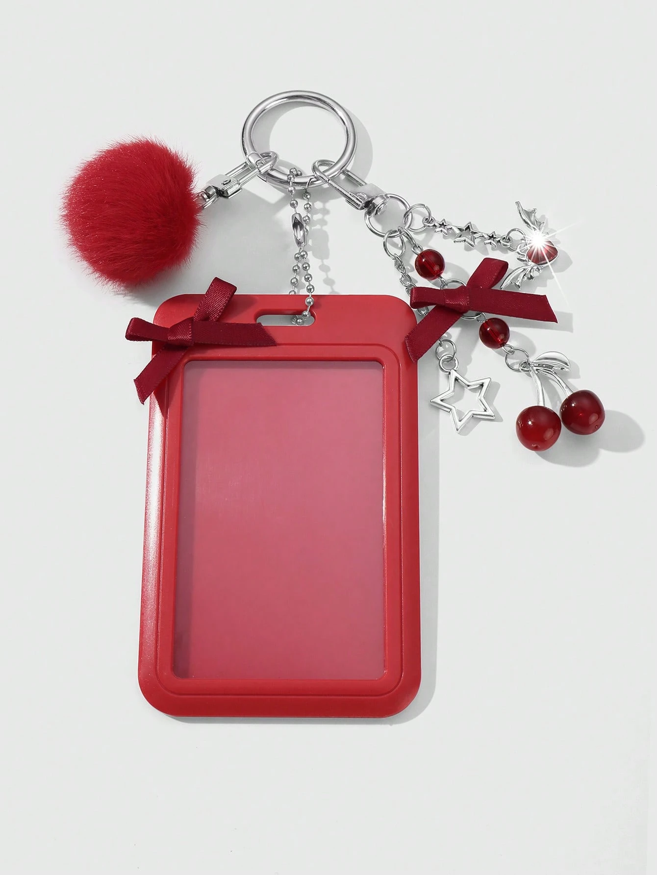 Kawaii 1pc Stylish Gothic Silver Beaded CCB Ribbon Bowknot & Heart Adjustable Lanyard ID Card Holder Charm Keychain, Suitable For Office Workers And Students, Perfect Gift Valentines, Halloween