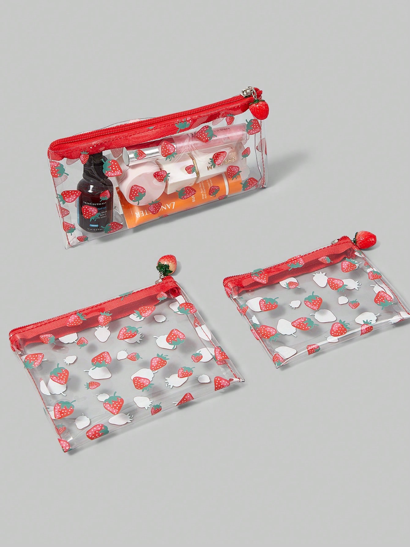 Kawaii 1pc Transparent PVC Strawberry Shaped Cosmetic Pouch