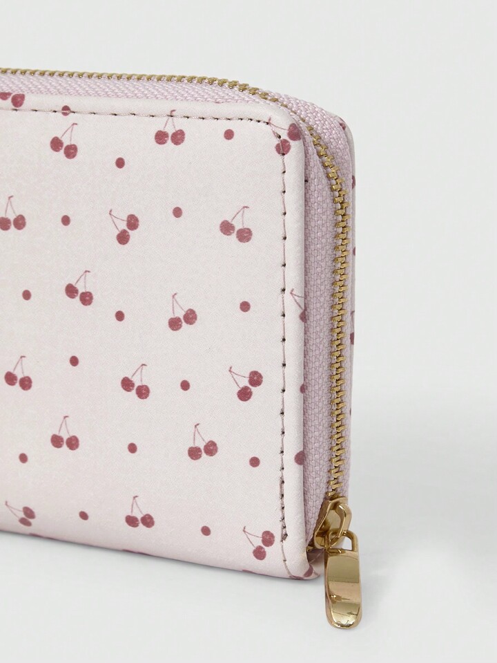 Kawaii 1pc Women Cherry Dot Pattern Zipper Minimalist Coin Purse For Women Wallet Purse Wallet Long Wallet