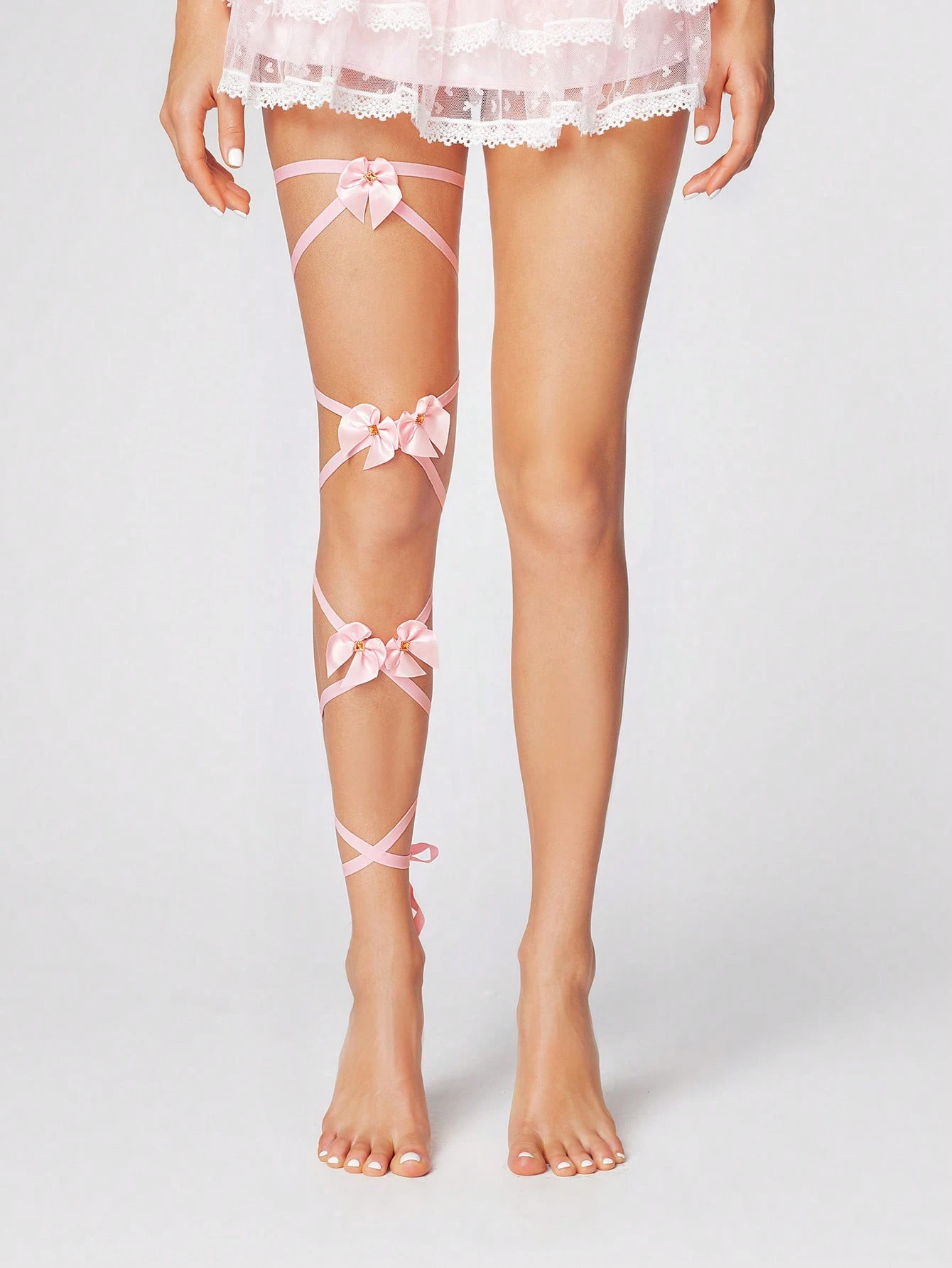 Kawaii 1pc Women Elasticated Bowknot Leg Wrap Skirt Layering Accessory, Gothic Aesthetic, Versatile Daily Wear