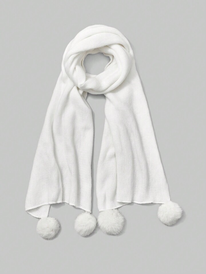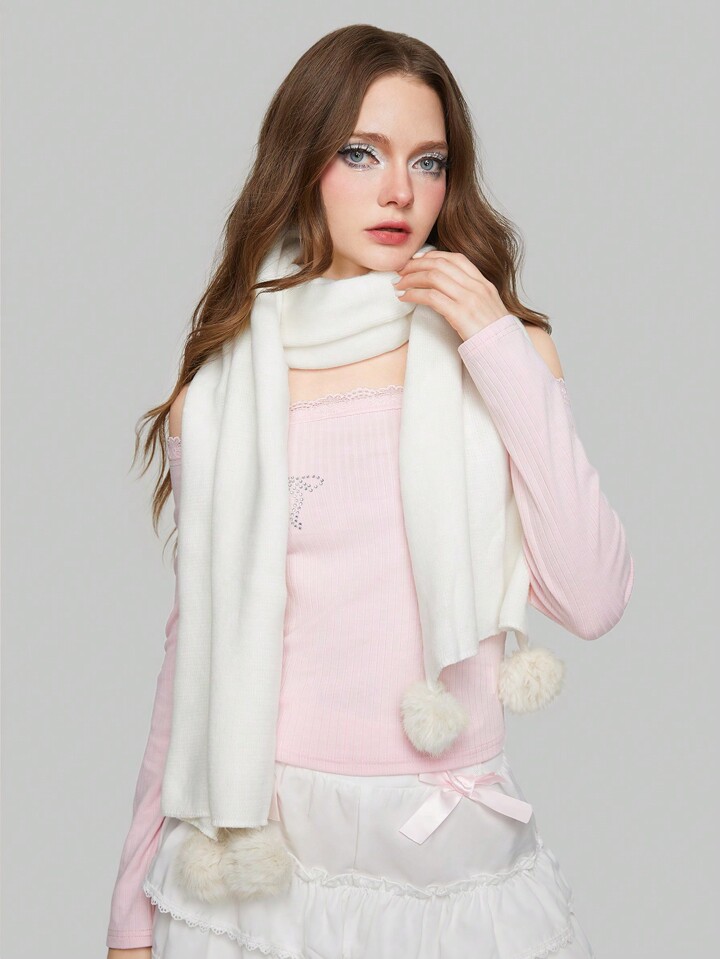 Kawaii 1pc Women Pom Pom Decor Scarf
