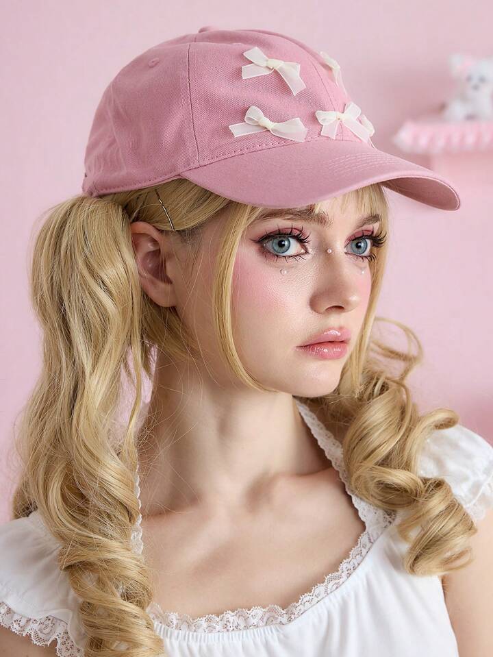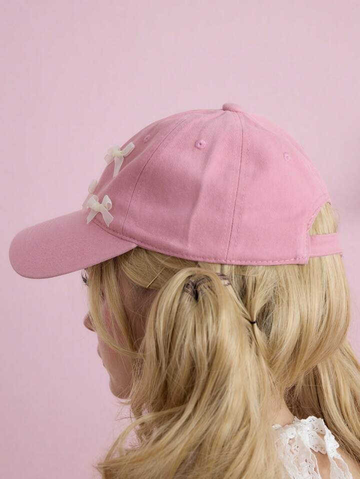 Kawaii 1pc Women's Fashion Versatile Bowknot Decor Baseball Cap