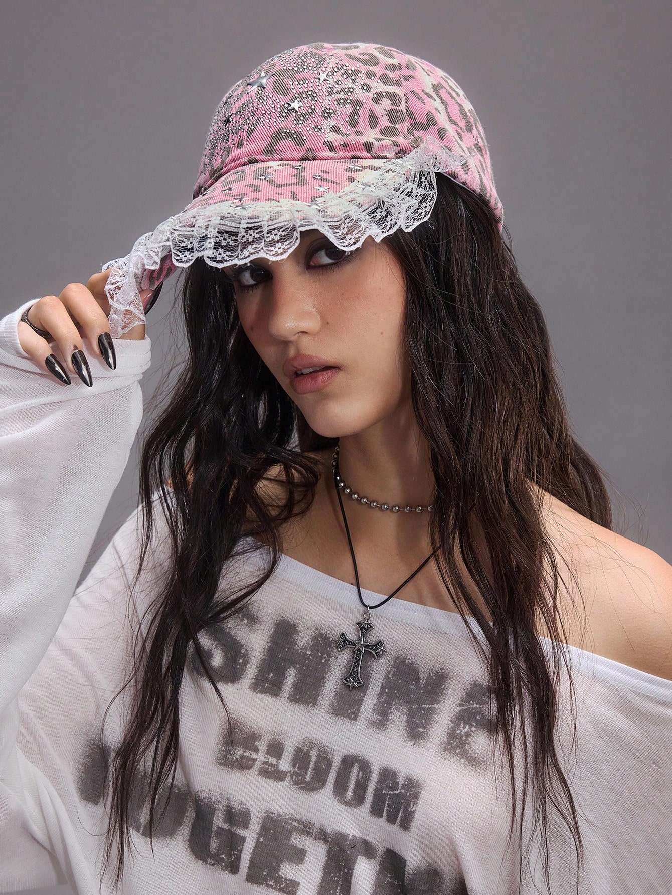 Kawaii 1pc Women's Leopard Print Rhinestone Star YK2 Baseball Cap