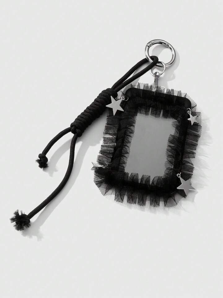 Kawaii 1pc Y2K Style Delicate High-Quality Goth Black Mesh Star Adjustable Lanyard, Suitable For ID Card Holder, Key Chain, Bag Accessory For Office Workers, Students, Daily Wear, Gift