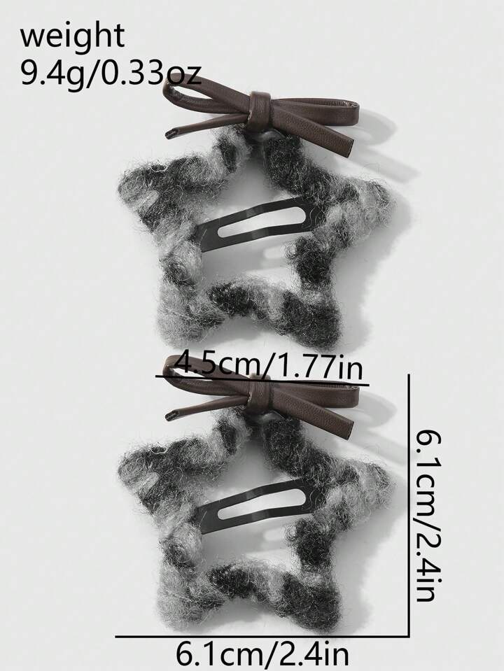 Kawaii 2 Pieces Plush Leopard Print Star & Bowknot Leather Barrettes Set, Versatile & Elegant Hair Clip, Gift For Women
