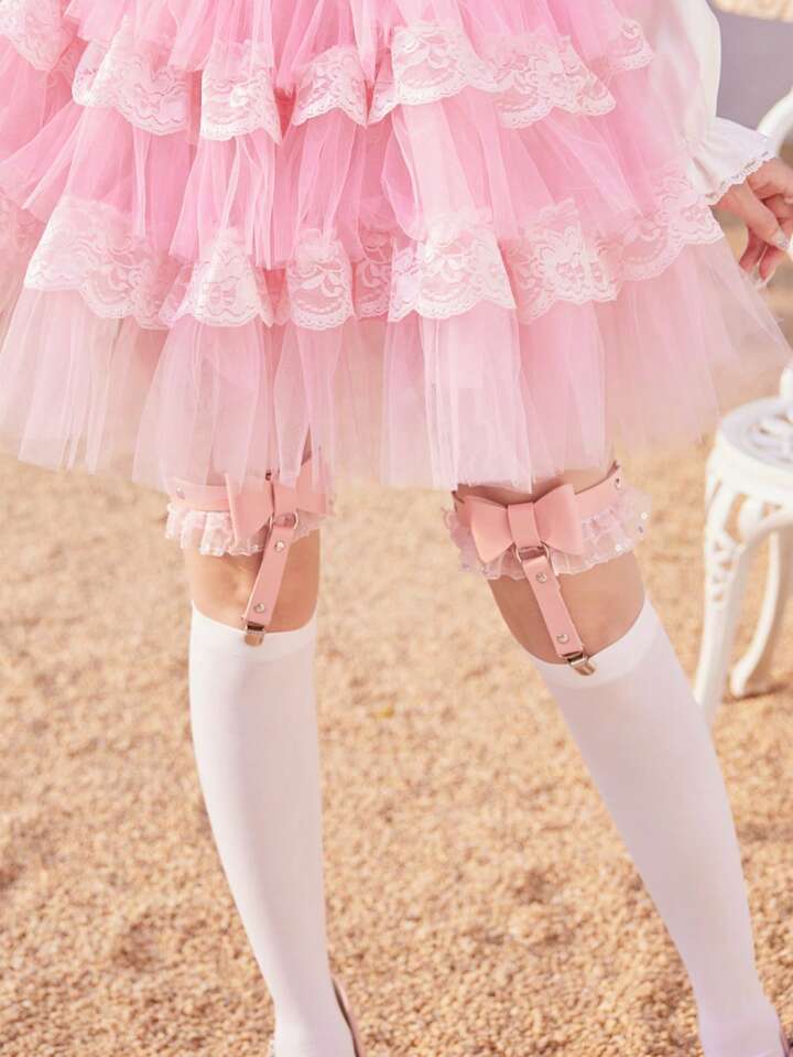 Kawaii 2pcs Bow Decor Garter Belt