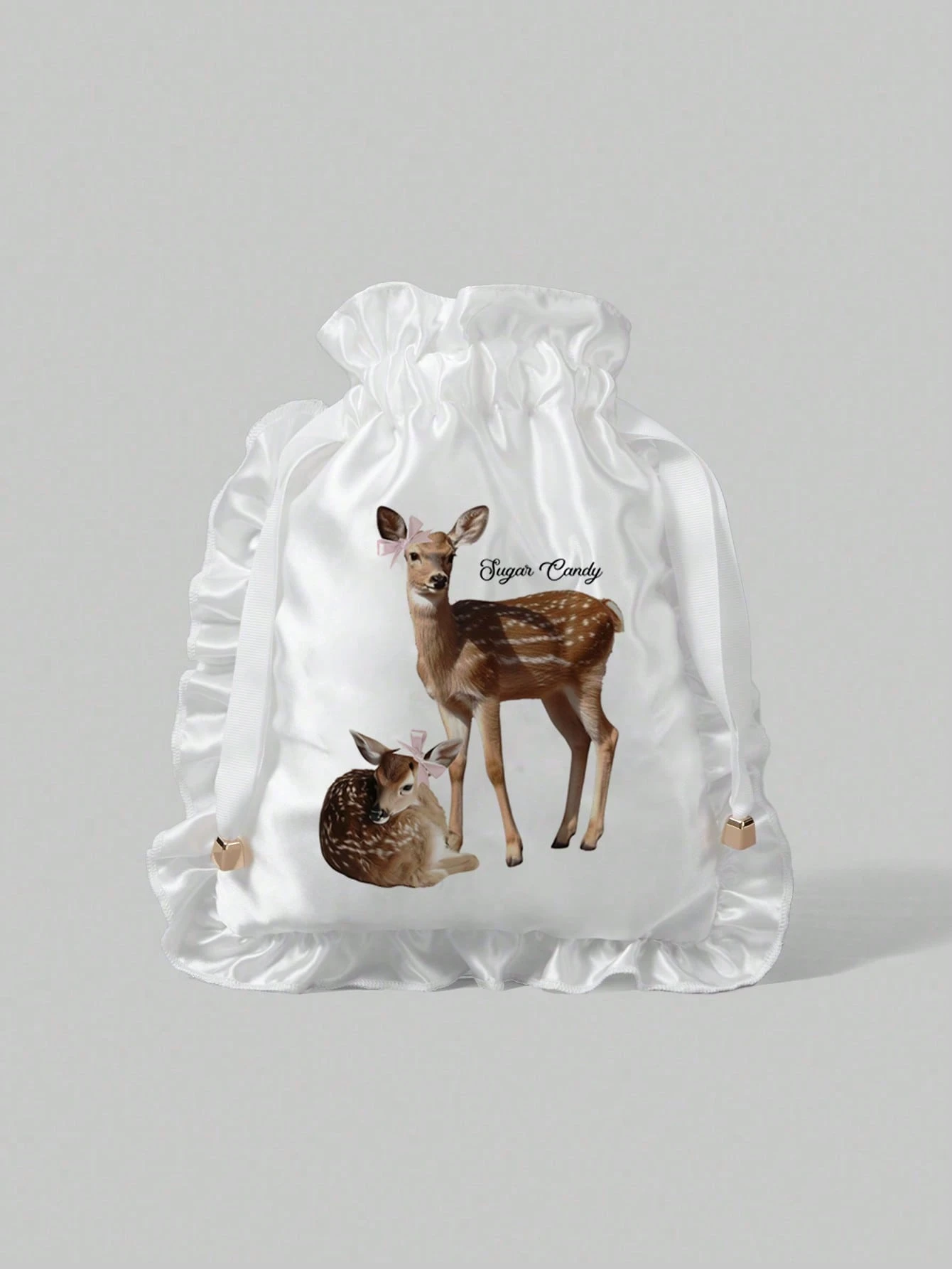 Kawaii 2pcs Cute Deer Pattern Travel Makeup Bag Drawstring Pouch For Underwear & Cosmetics Storage