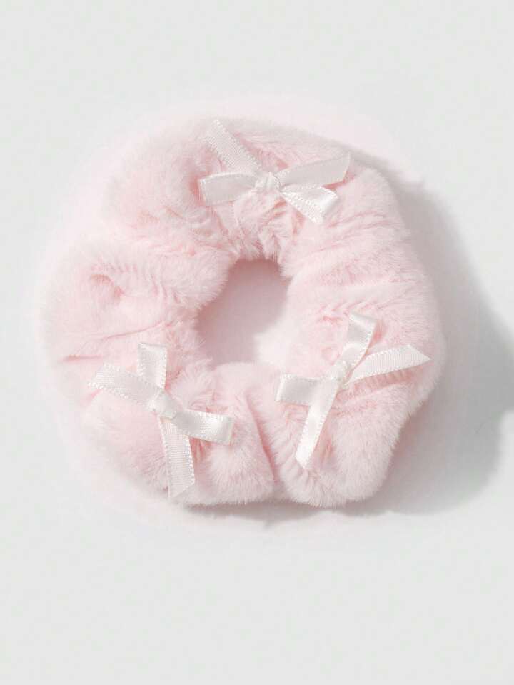Kawaii 2pcs Cute & Stylish Pink Fluffy Bow Hair Scrunchies, Versatile High-Quality School Style For Women And Girls, Suitable For Daily Wear And Holiday Gifts Valentines Hair Ties Scrunchy Hair Ties