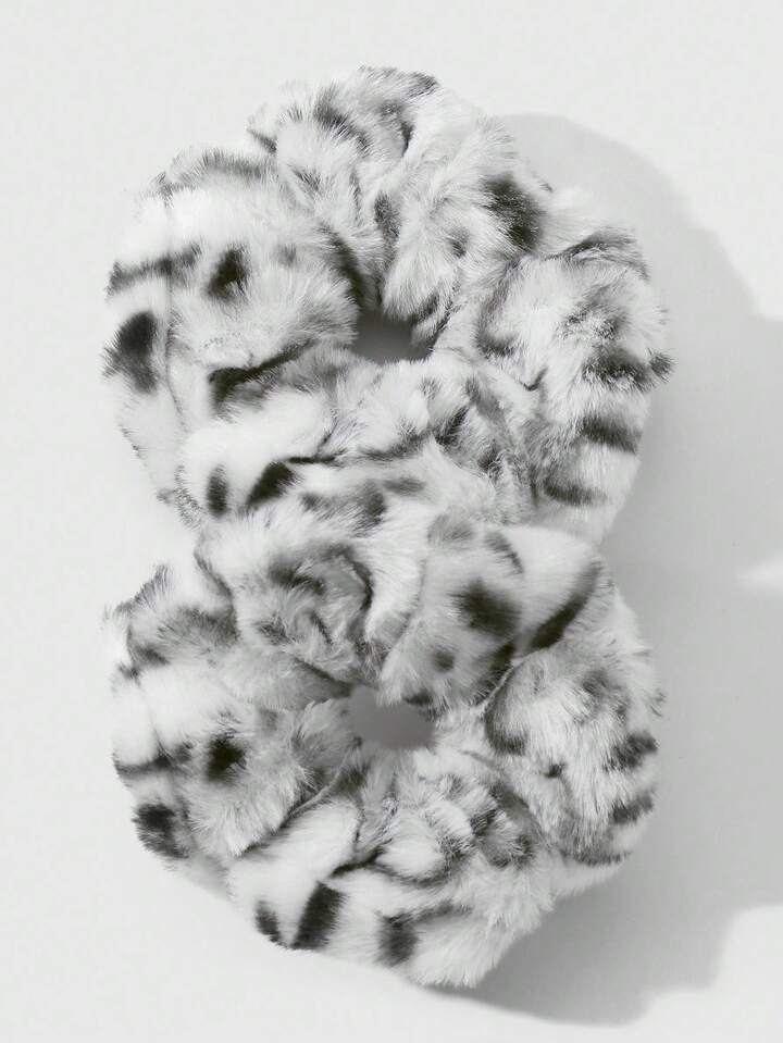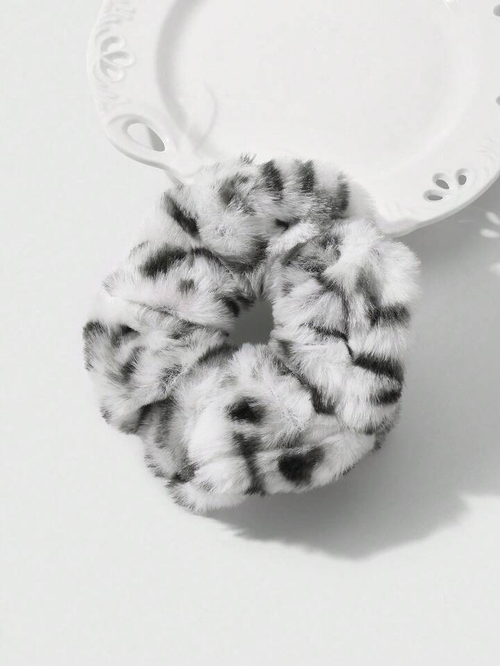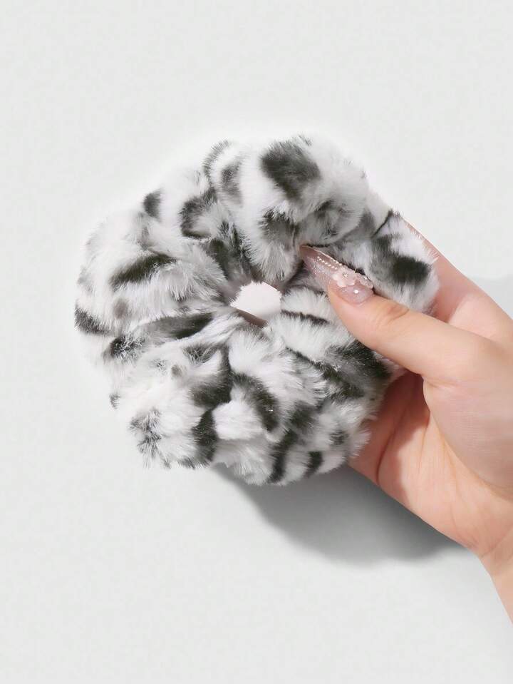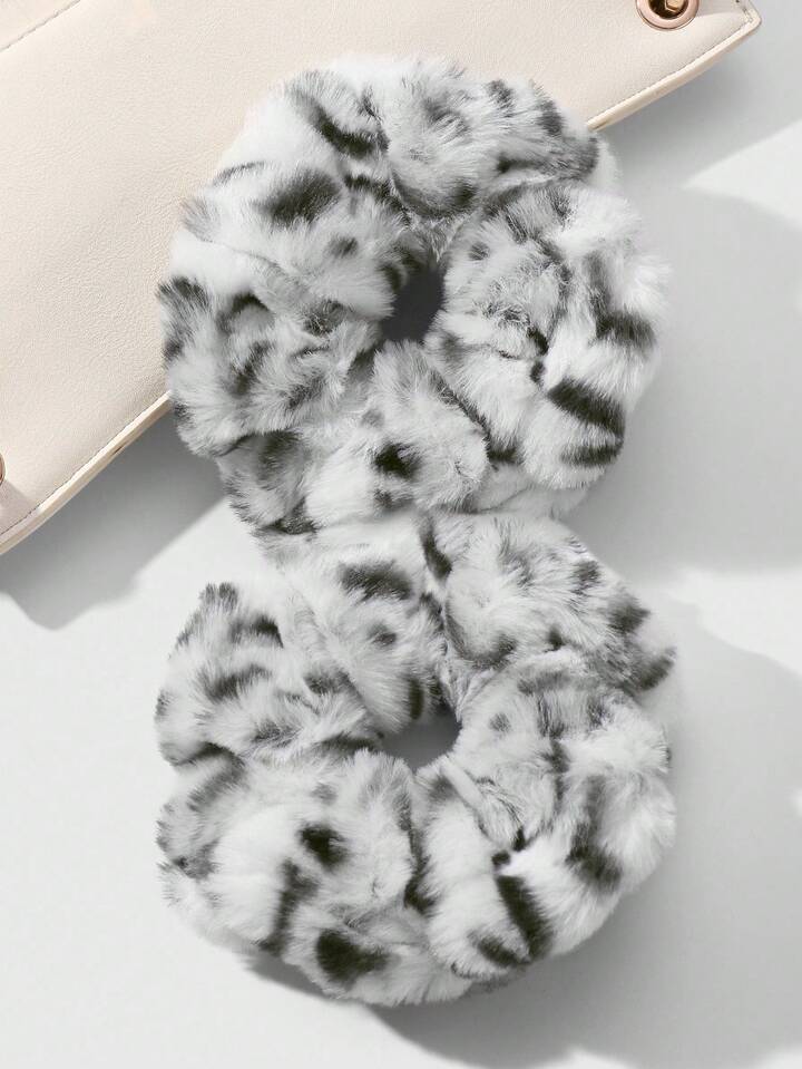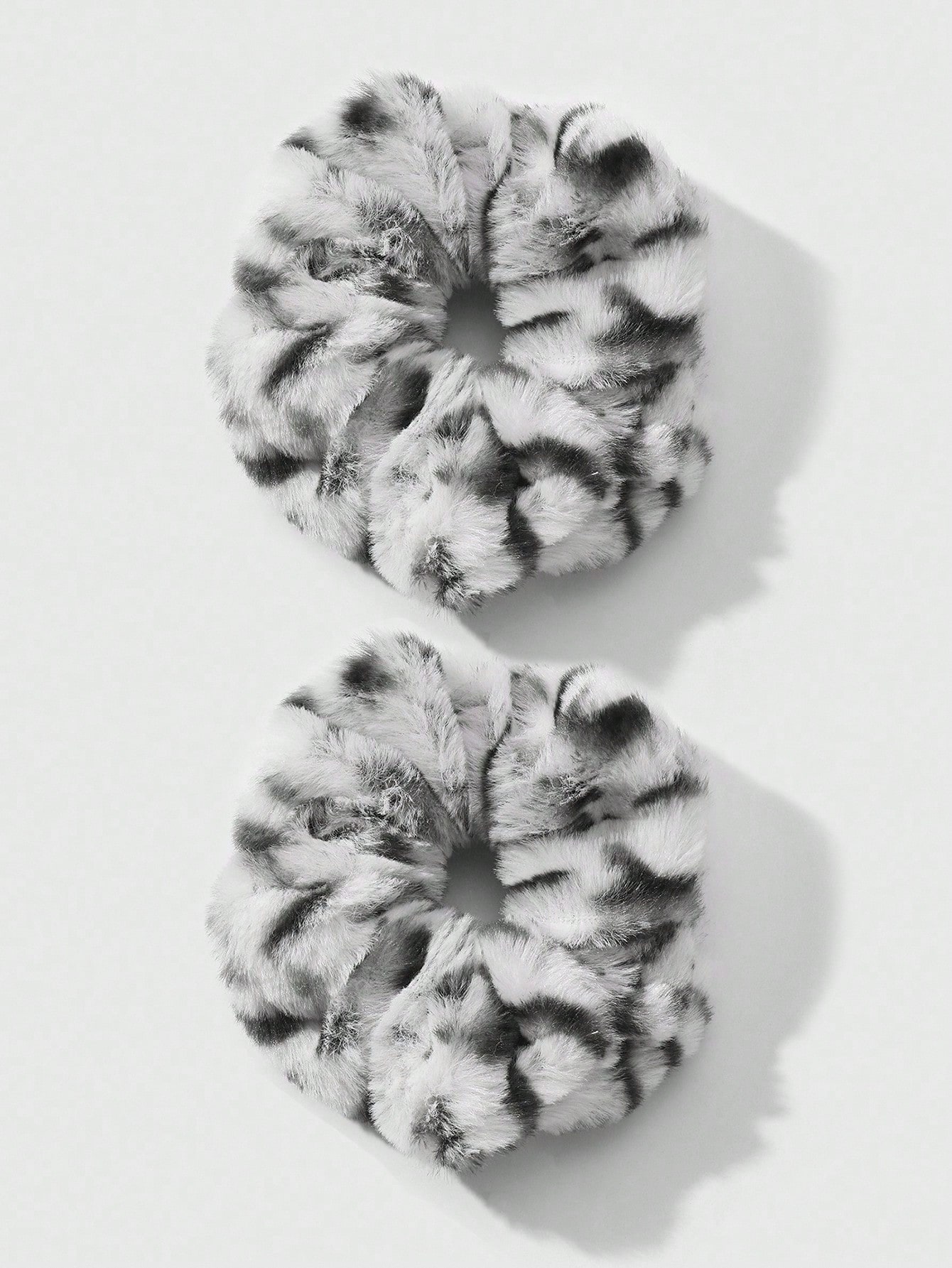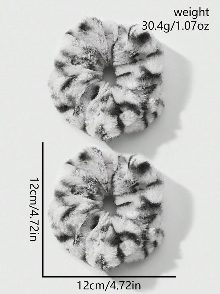 Kawaii 2pcs Retro Chic Fashionable High-Quality Black & White Leopard Print Fluffy Scrunchies Set, Versatile Combo Suitable For Women, Daily Wear Or Gift