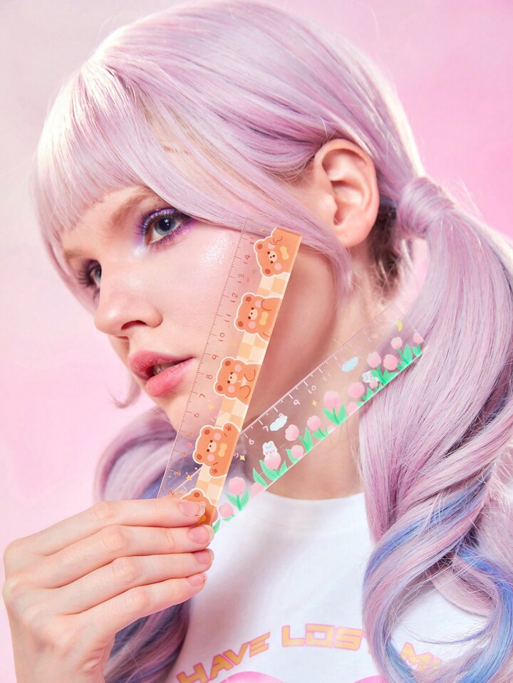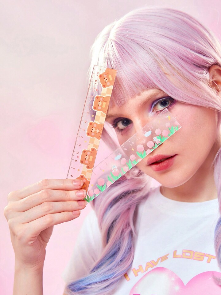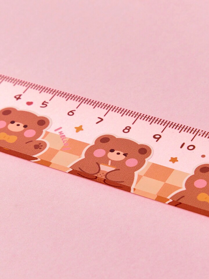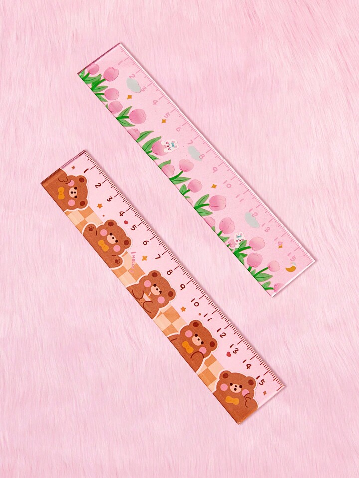 Kawaii 2pcs Ruler, Cute Cartoon Bear & Floral Graphic Ruler, School