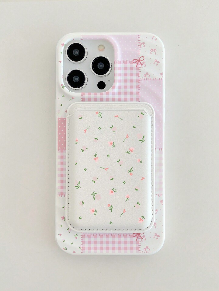 Kawaii 2pcs/Set Ditsy Floral Magsafe Phone Case Wireless Charging Magnetic Case With Matching Magnetic Card Holder