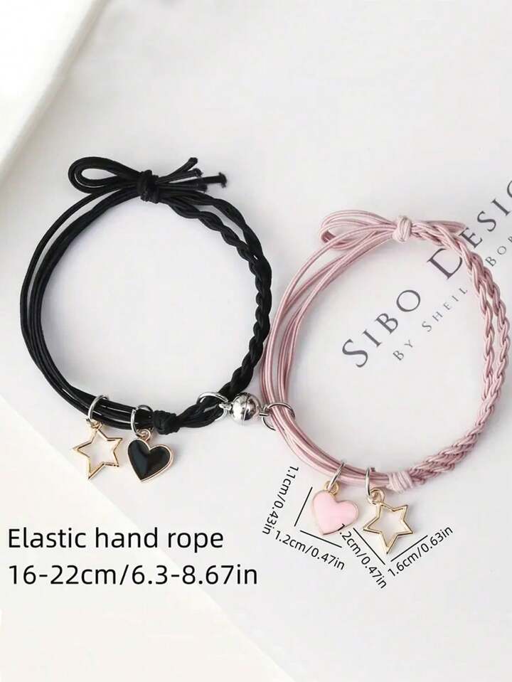 Kawaii 2pcs Summer Magnetic Couple Bracelets With Star, Heart And Butterfly Charm For Friendship, Couples, Valentine Gifts