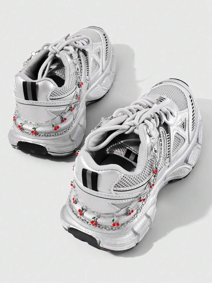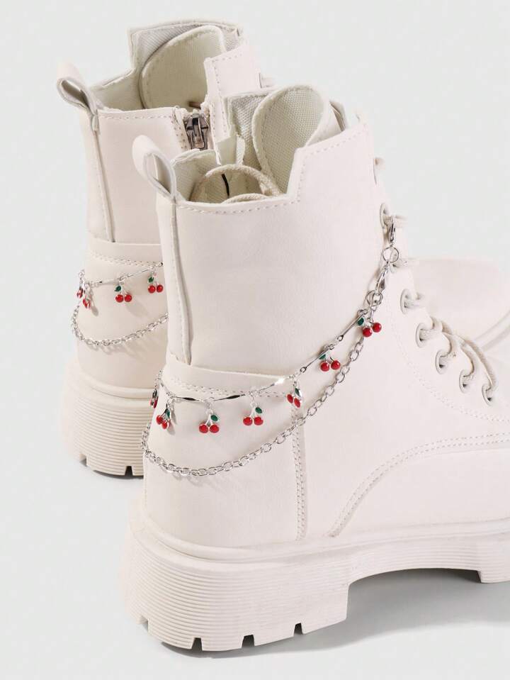 Kawaii 2pcs Y2K Chic Delicate High-End Silver Multi-Layer Chain Faux Oil Drop Cherry Pendant Adjustable Lobster Clasp DIY Shoe Decorations, Suitable For Women Daily Match Any Shoes, Holiday Gift