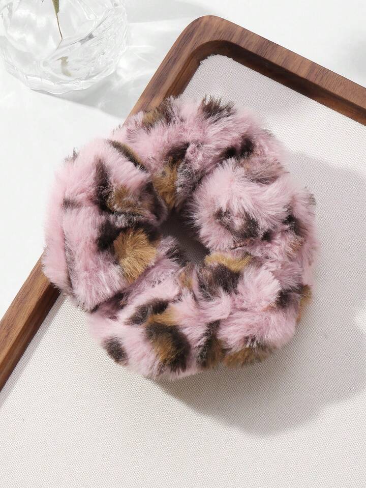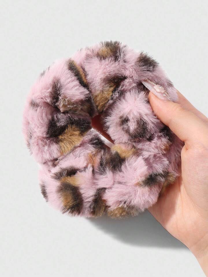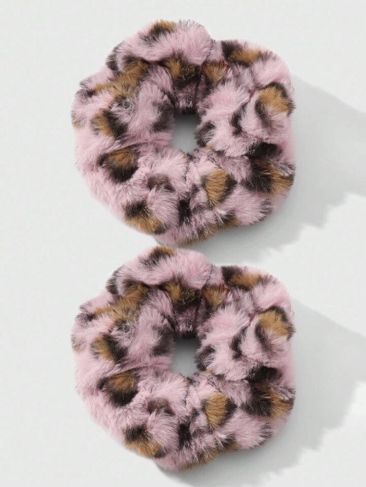 Kawaii 2pcs Y2K Retro Chic Leopard Print Fluffy Hair Scrunchies Set, Fashionable Accessories Suitable For Women, Girls, Daily Wear, Holiday Gift