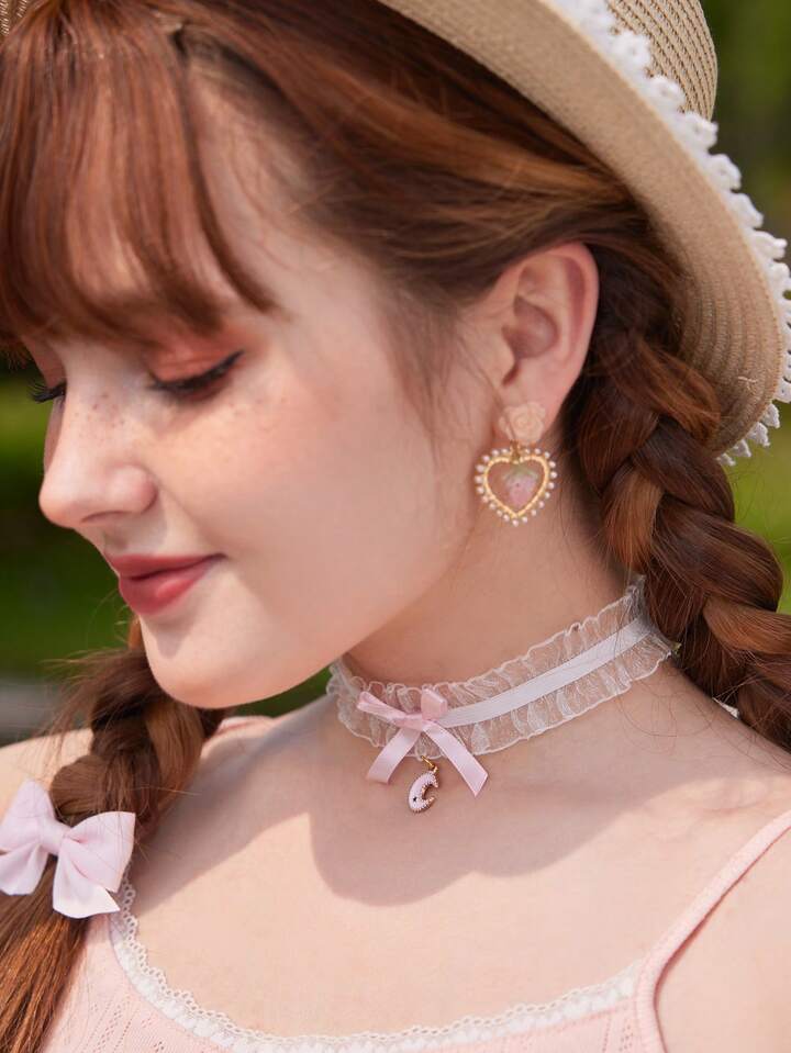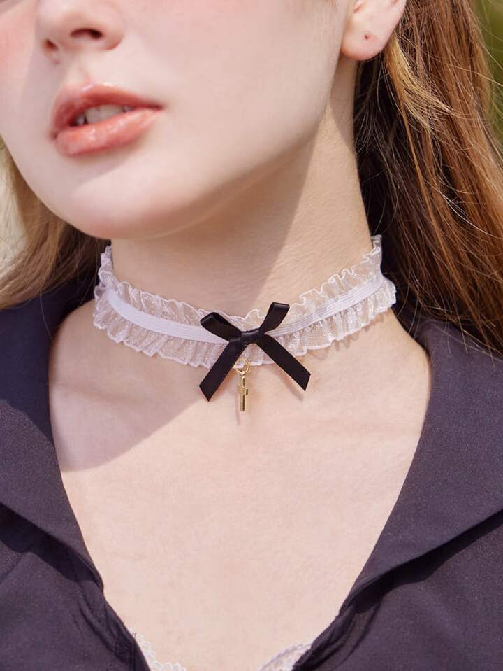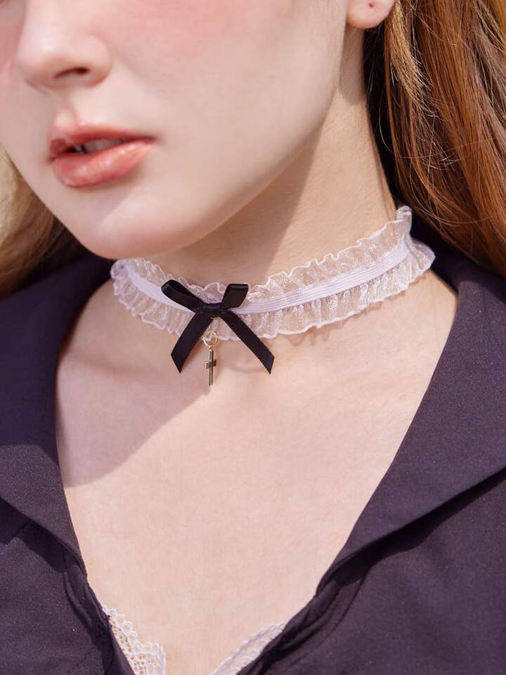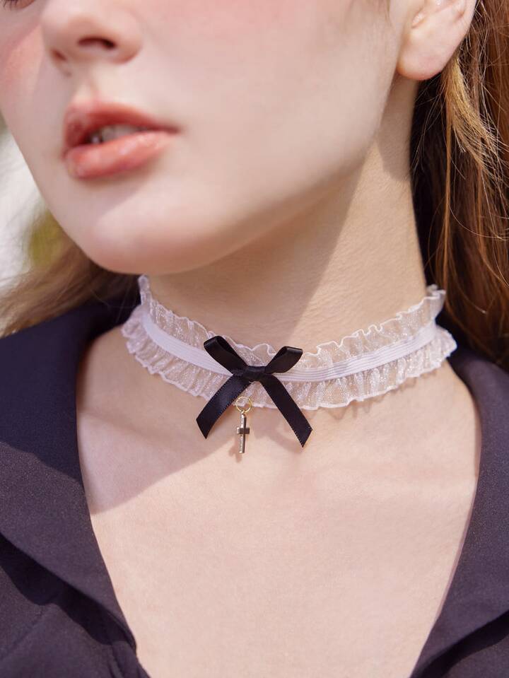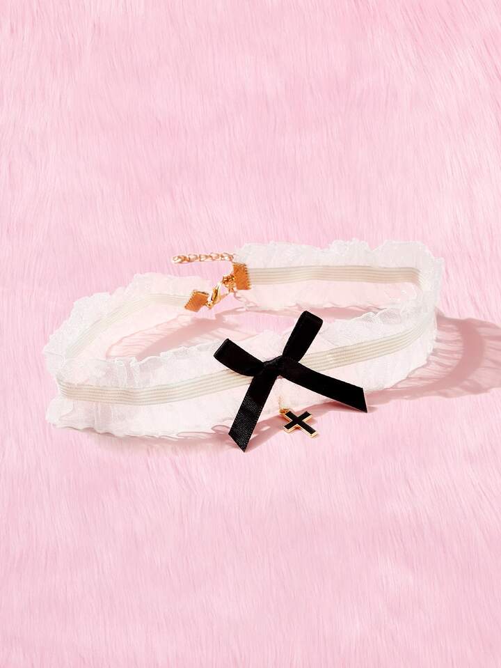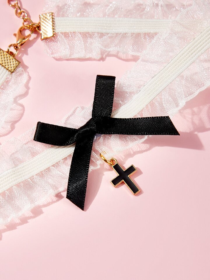 Kawaii 2pcs/set Bow Decor Cross & Moon Charm Choker