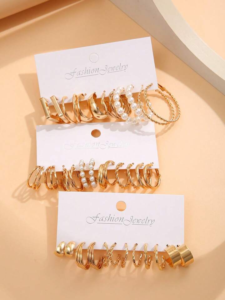 Kawaii 36pcs Geometric Simple Faux Pearl Stud Earrings For Women, Travel & Dating Gift